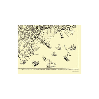 Old City Map - Boston Massachusetts - Derving 1722 - This is an exquisite full-color Reproduction printed on high-quality gloss paper, art paper or canvas.