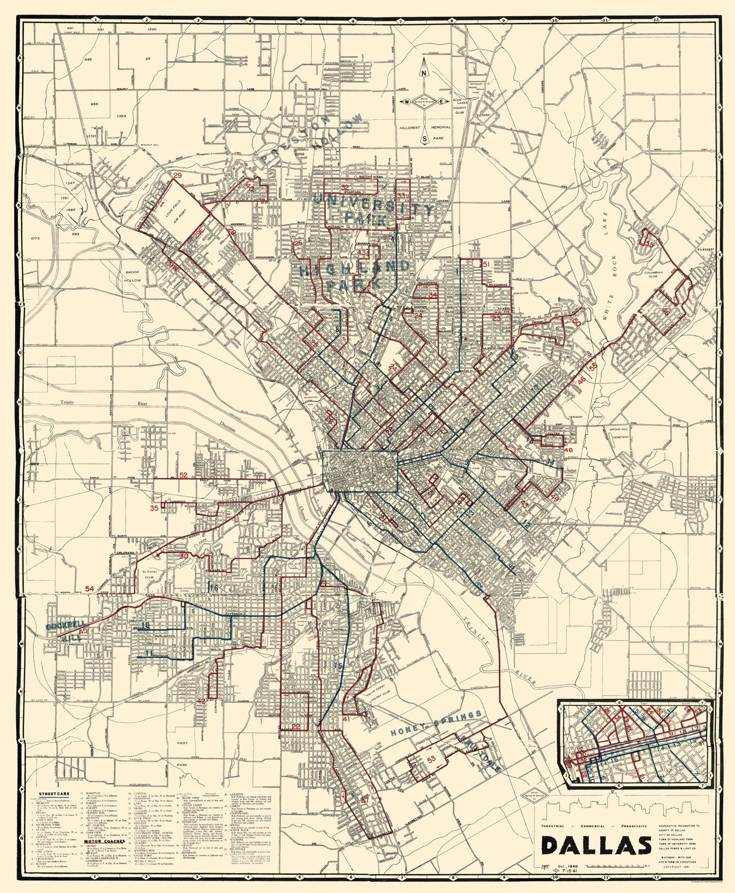 Historic City Map - Dallas Texas Street Cars - 1941 - 23 x 27.95 - Vintage Wall Art