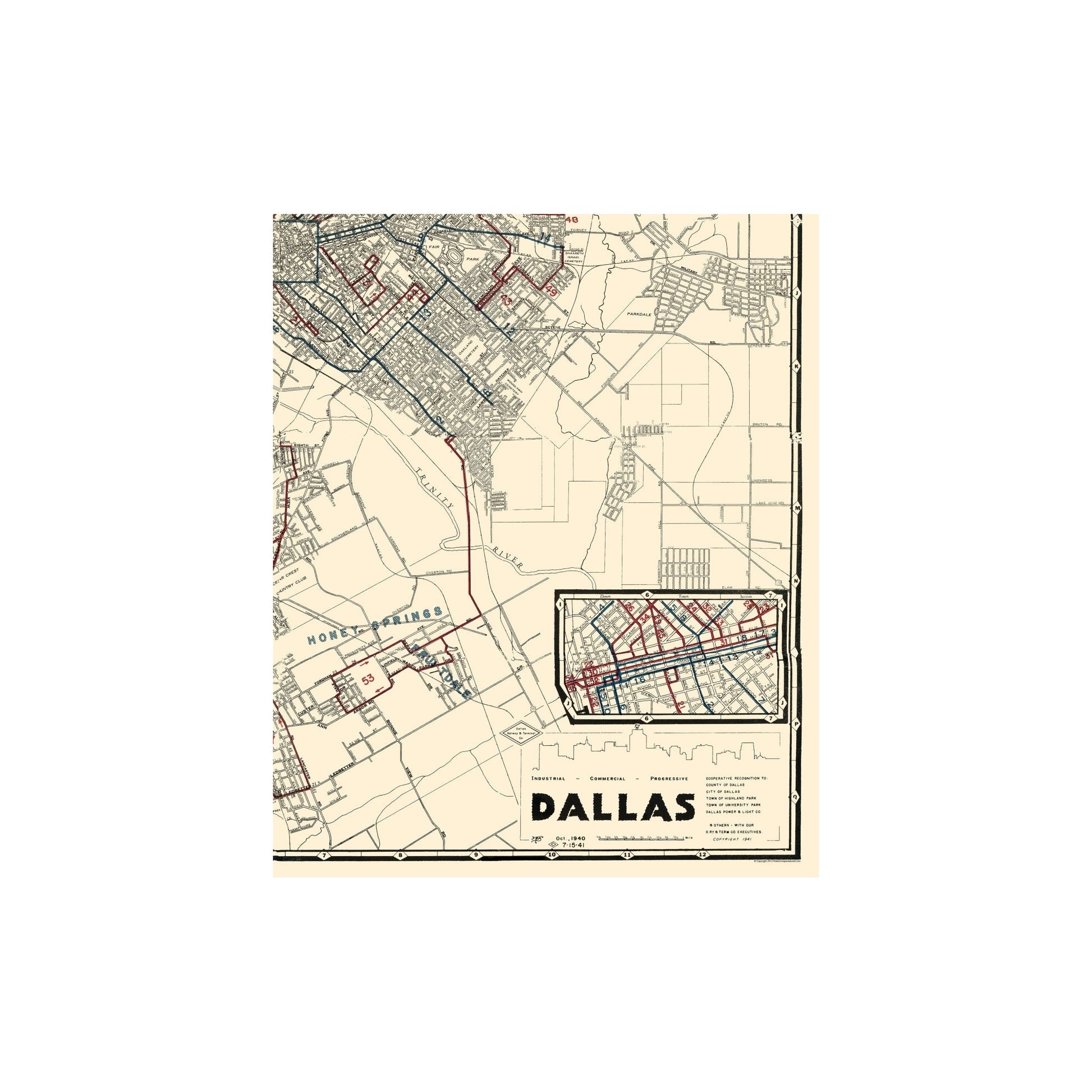 Old City Map - Dallas Texas - Dallas Railway 1941 - This is an exquisite full-color Reproduction printed on high-quality gloss paper, art paper or canvas.