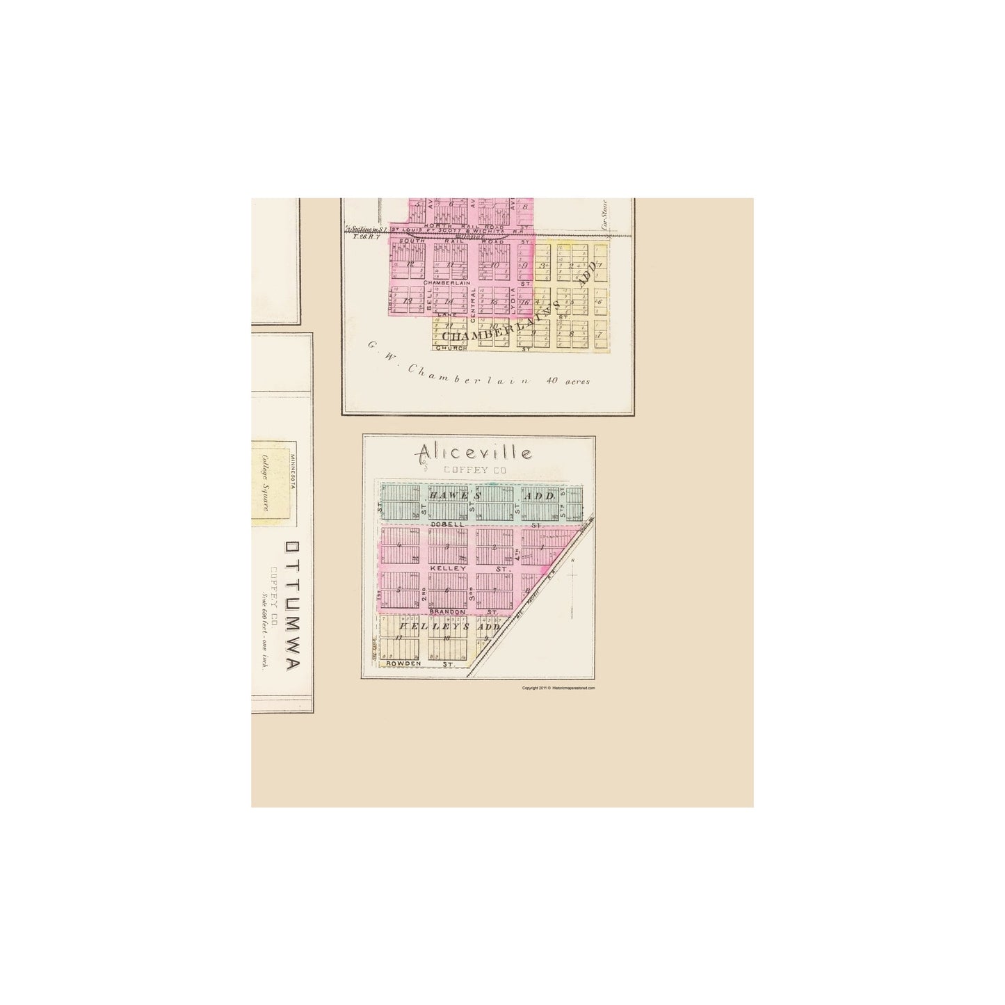 City Map - Degraff, Augusta, Rosalia, Aliceville, Ottumwa Kansas 1887 - This is an exquisite full-color Reproduction printed on high-quality gloss paper, art paper or canvas.