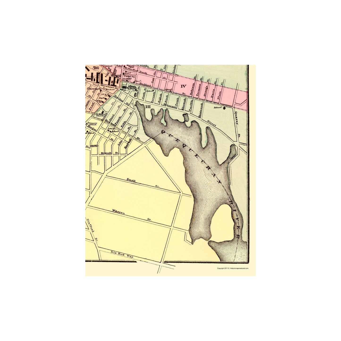 Old City Map - Fall River Massachusetts - Walling 1871 - This is an exquisite full-color Reproduction printed on high-quality gloss paper, art paper or canvas.