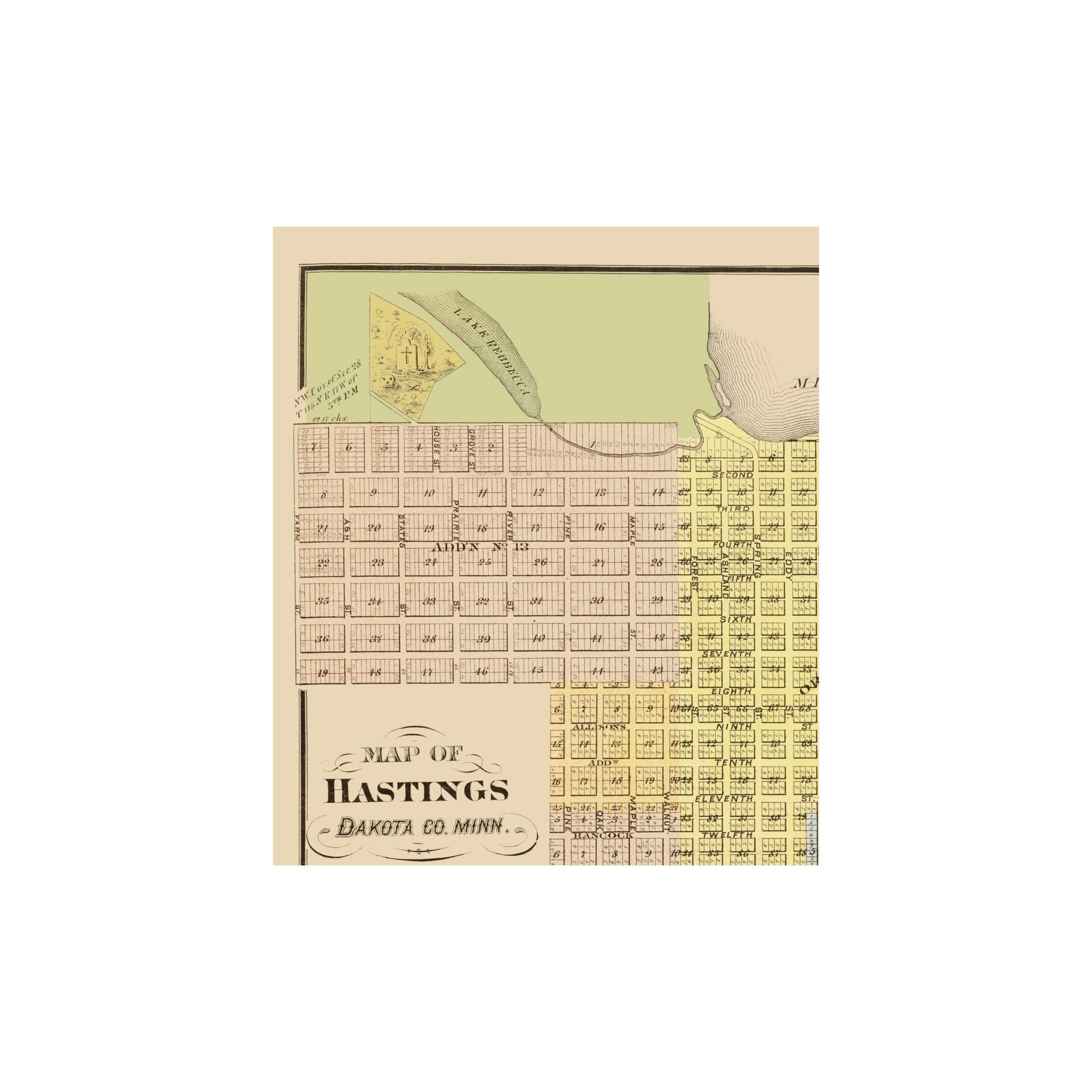 Old City Map - Hastings Minnesota - Andreas 1874 - This is an exquisite full-color Reproduction printed on high-quality gloss paper, art paper or canvas.