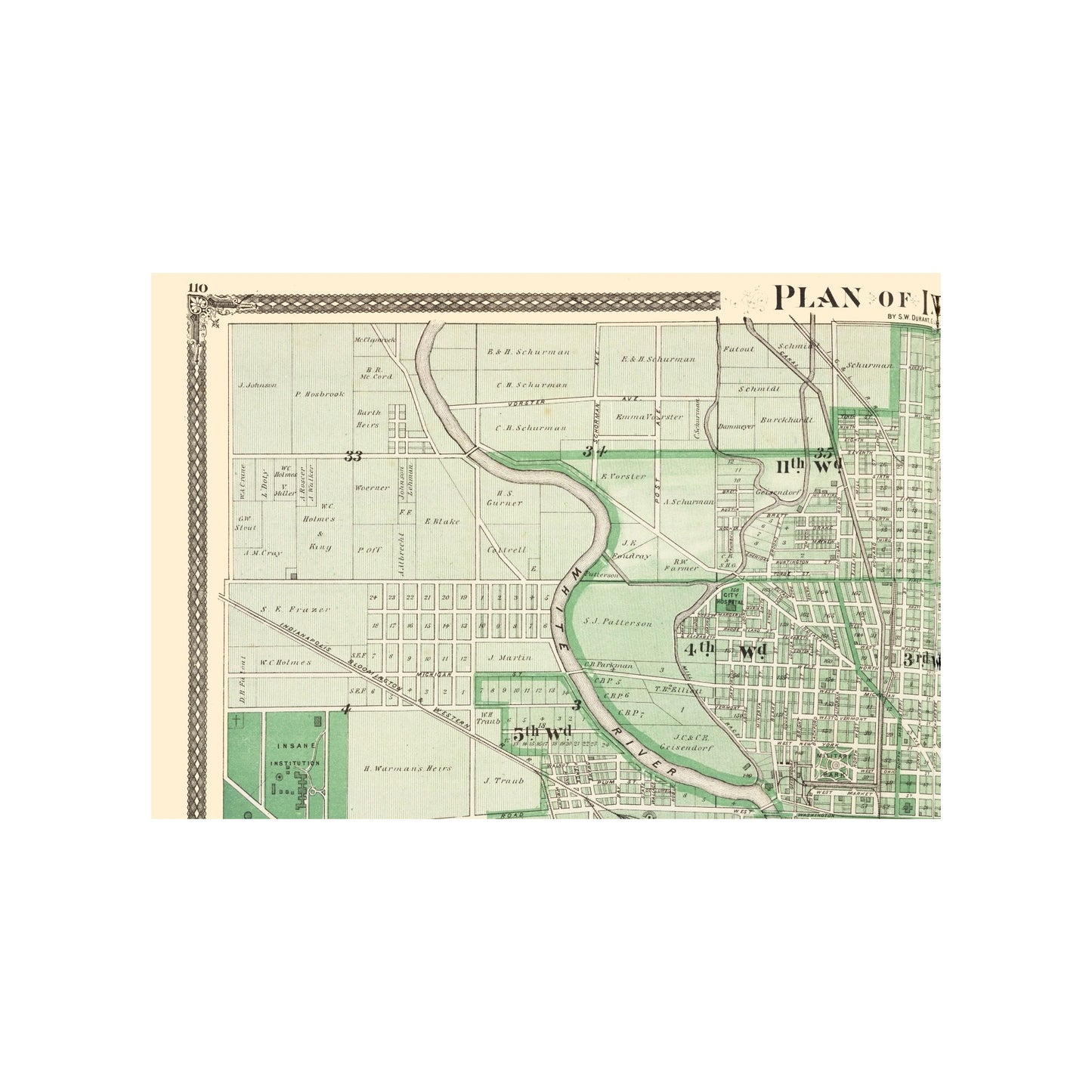 Old City Map - Indianapolis Indiana Landowner - Baskin 1876 - This is an exquisite full-color Reproduction printed on high-quality gloss paper, art paper or canvas.