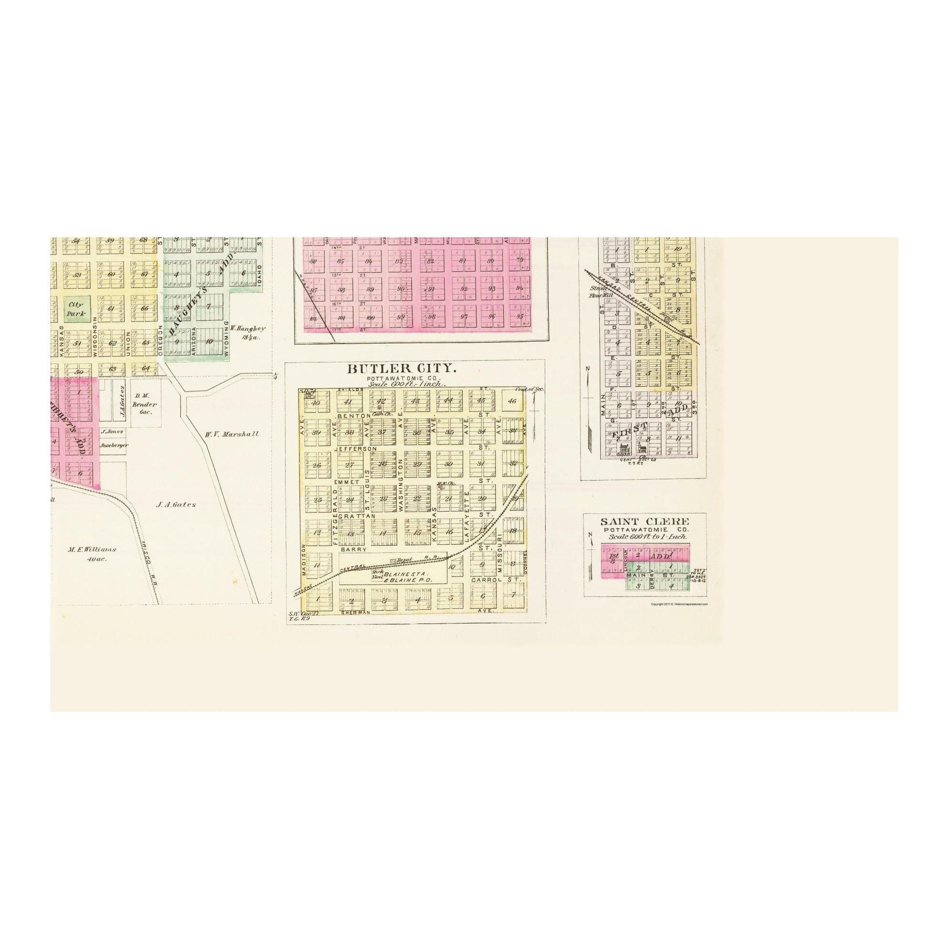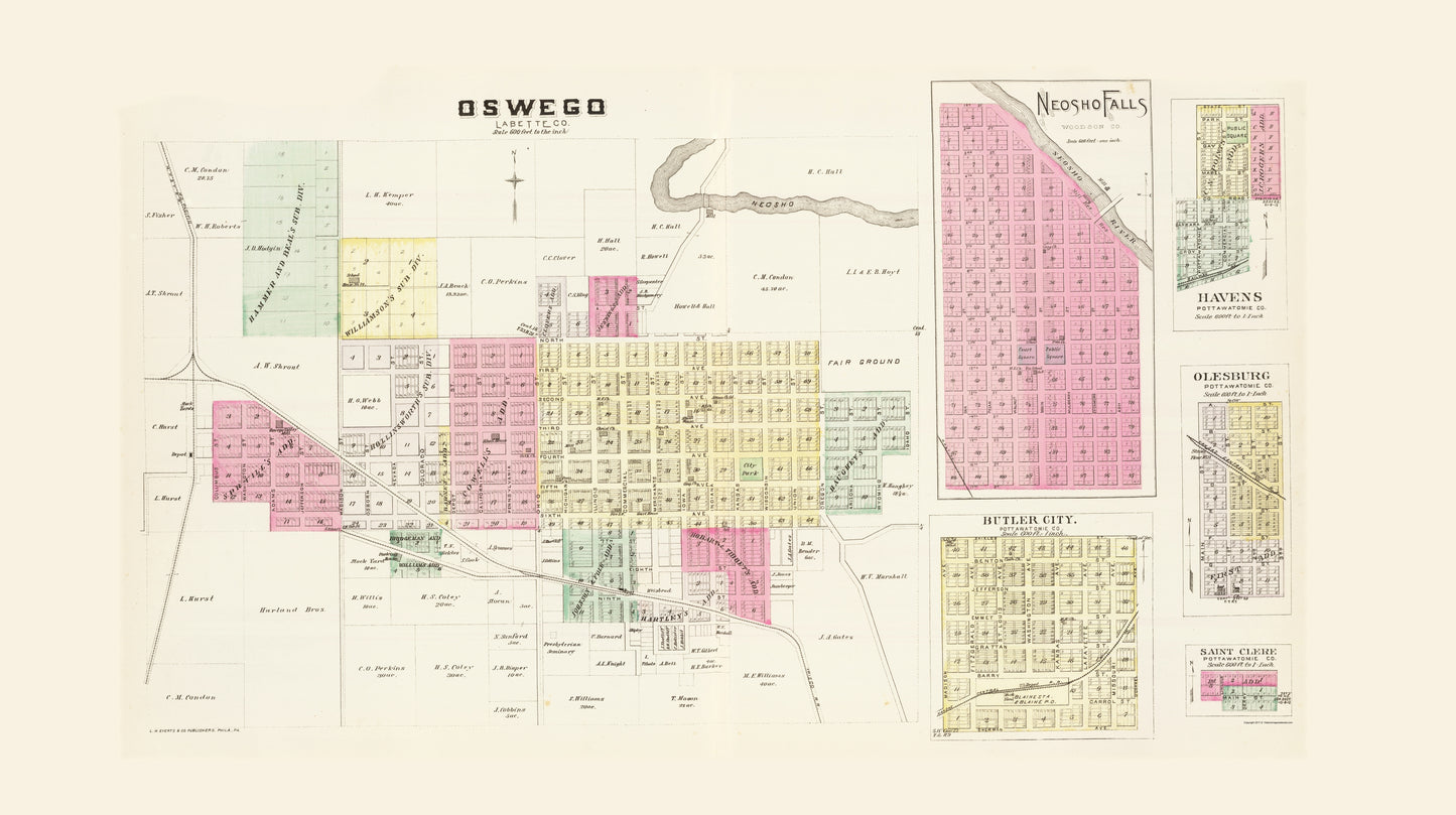 Sites and Townships Specific To This Map Are: Oswego, Neosho Falls, Havens, Olesburg, Butler City, and Saint Clere.