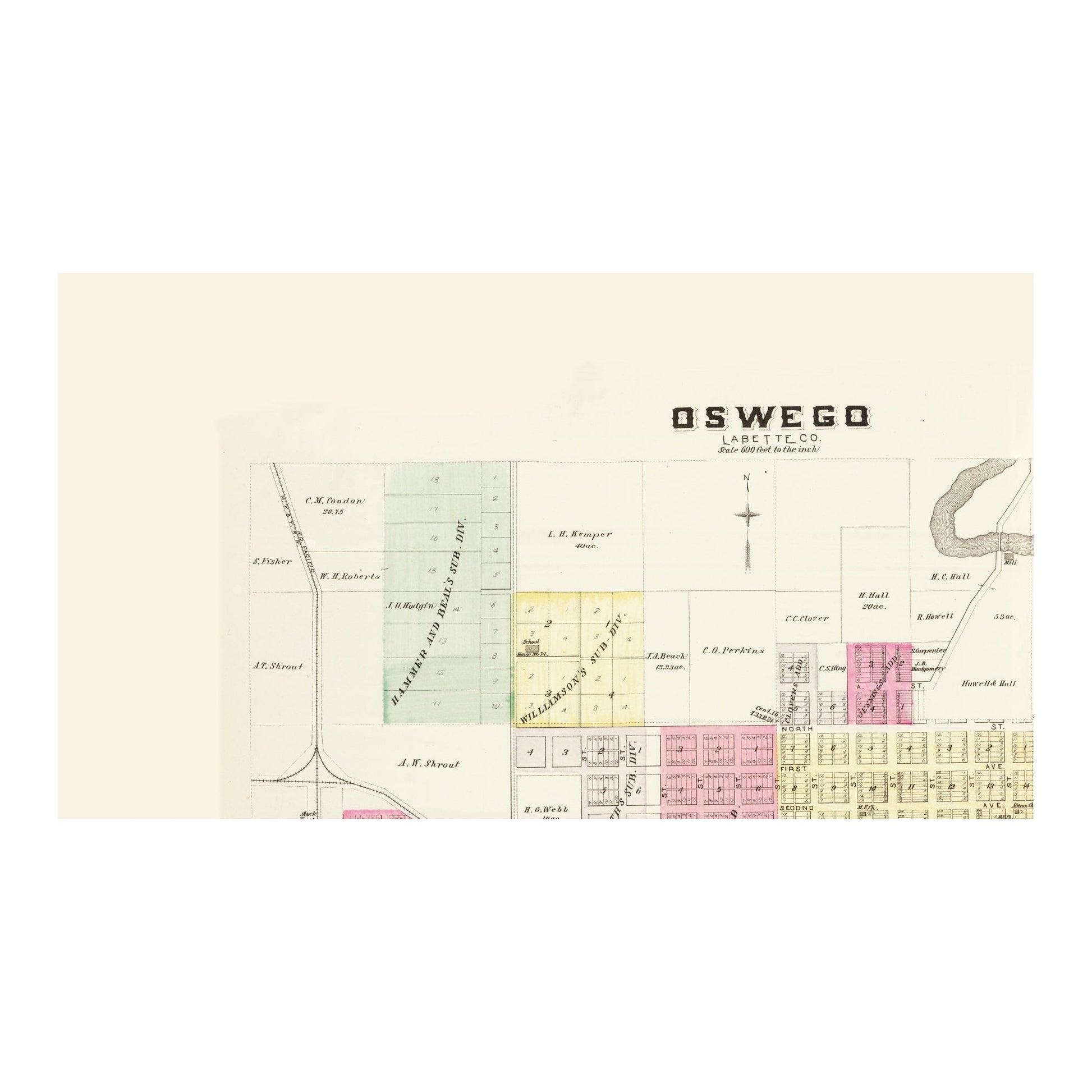 The following towns are featured: the Neosho River runs through several of these cities. A collection of several cities in three counties, some of the larger maps give landowner's names in the general area. Lots are not shown when these names are included.