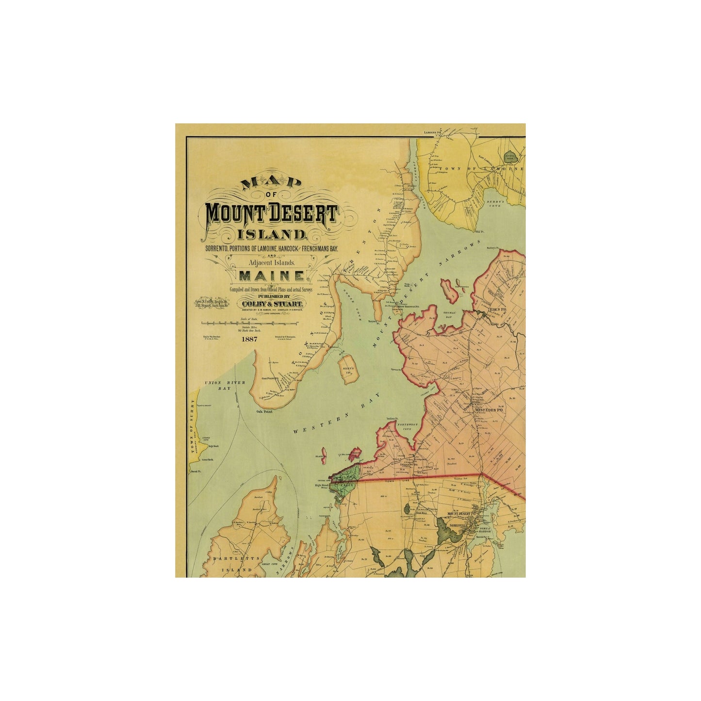 Historic City Map - Mount Desert Island Maine County - Colby 1887 - 23 x 29.81 - Vintage Wall Art