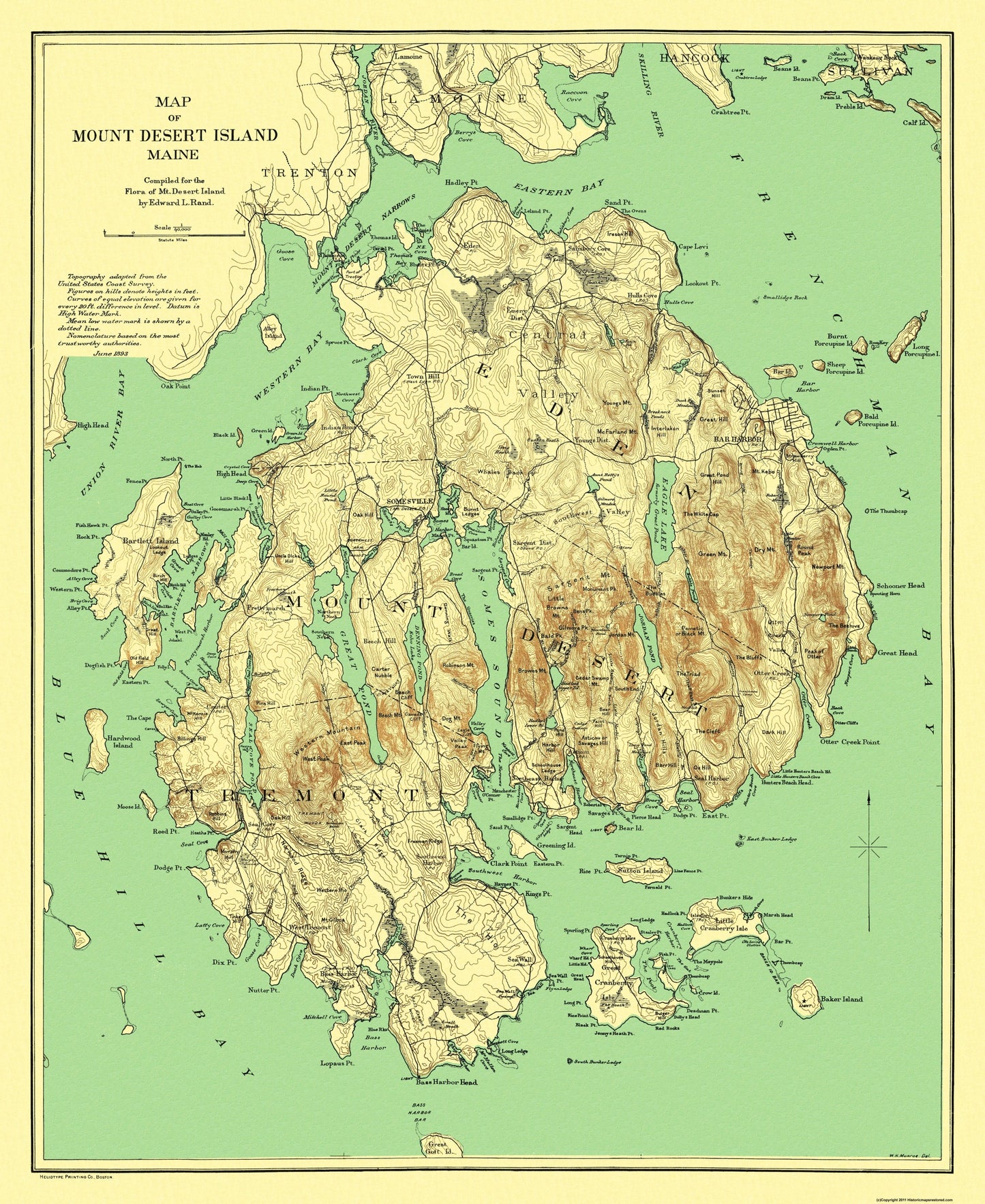 Old City Map - Mount Desert Island Maine - 1893 - This is an exquisite full-color Reproduction printed on high-quality gloss paper, art paper or canvas.