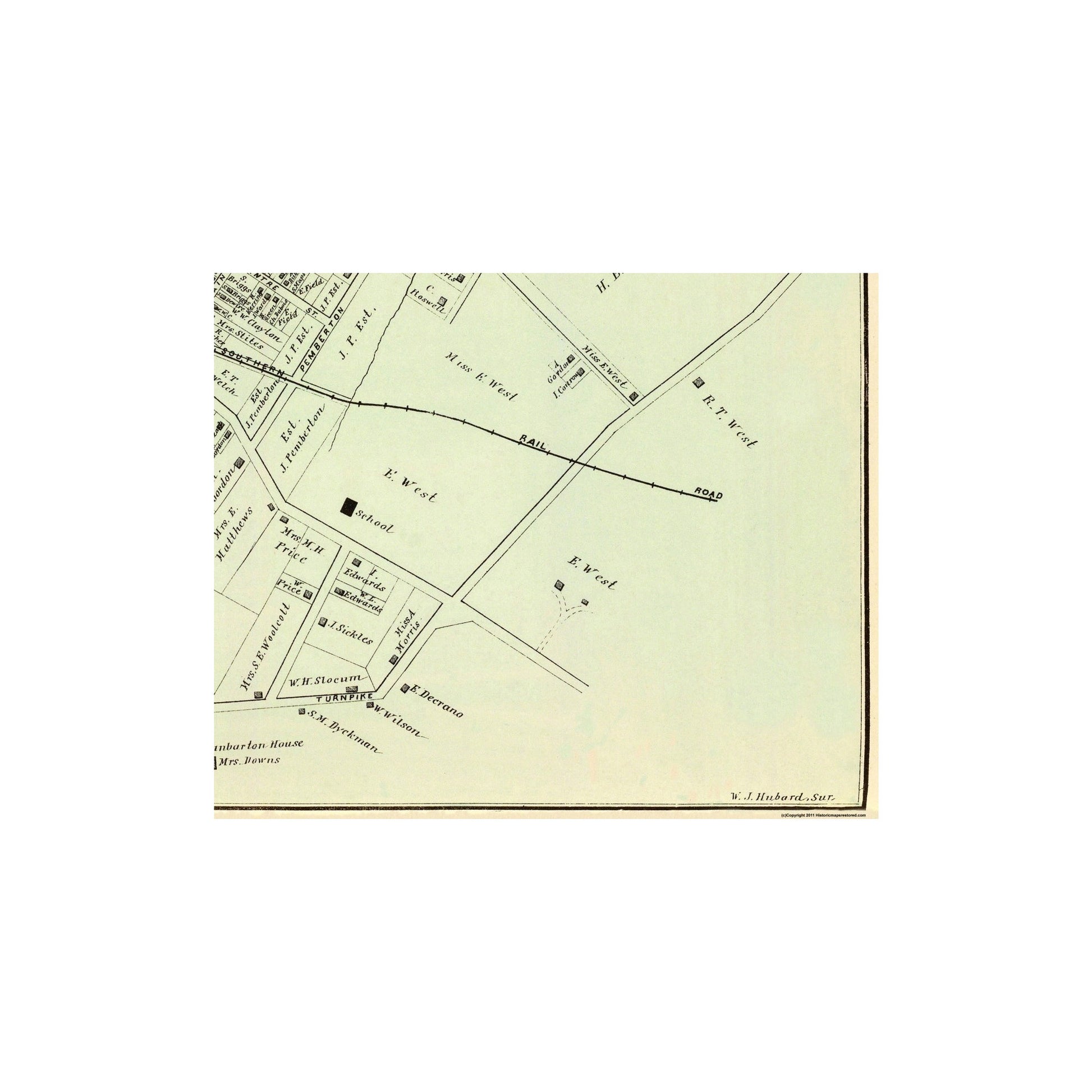Sites and Townships Specific To This Map Are: Original Townships of: Shrewsbury, Eatontown, New Jersey and Southern Railroad, Monmouth Park, Shrewsbury River, Schools, Churches, and many other Prominent Buildings Located, Many Named Landowners.