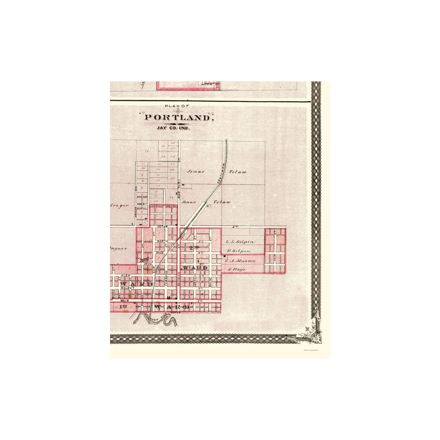 Old City Map - Portland Indiana - Baskin 1876 - This is an exquisite full-color Reproduction printed on high-quality gloss paper, art paper or canvas.
