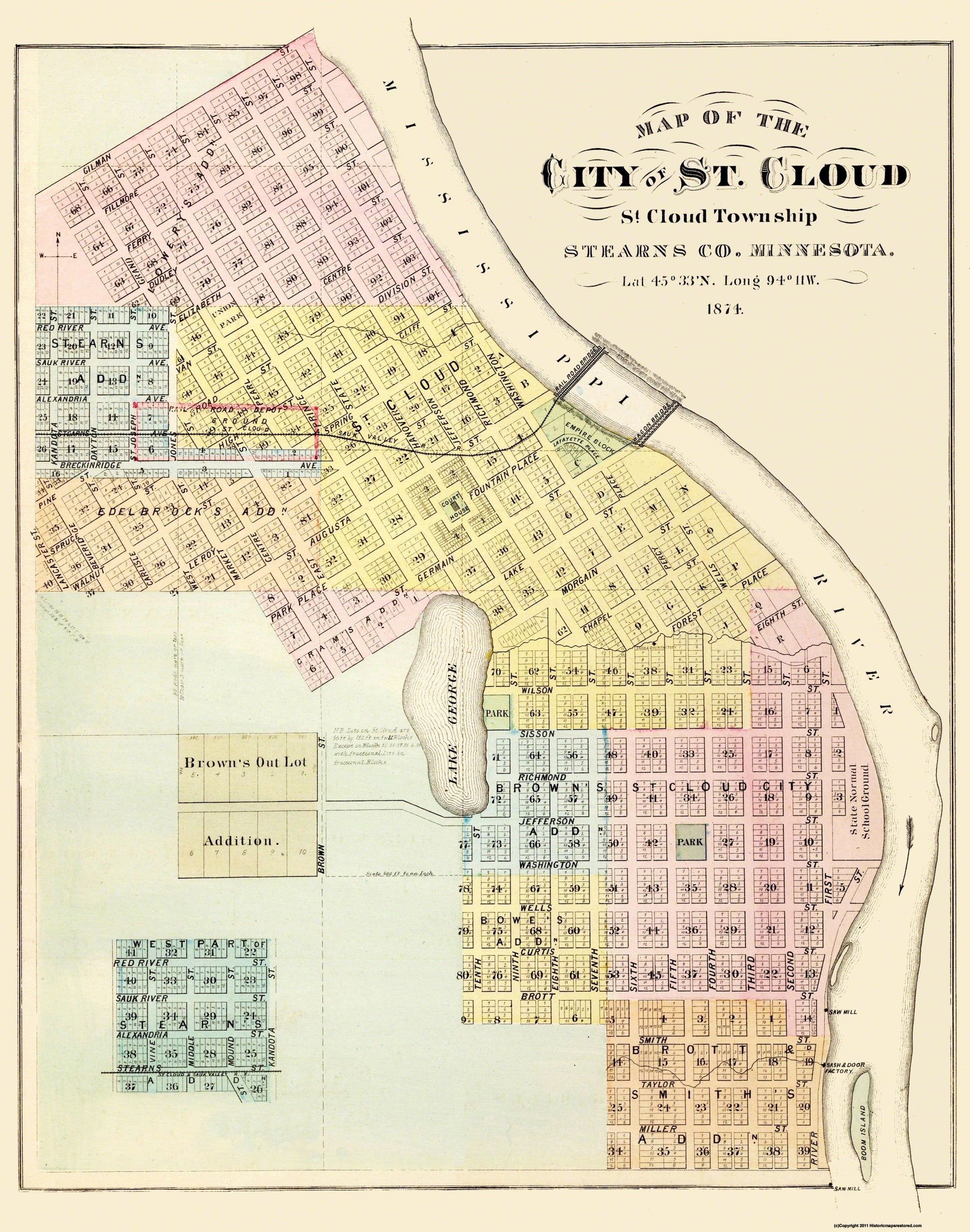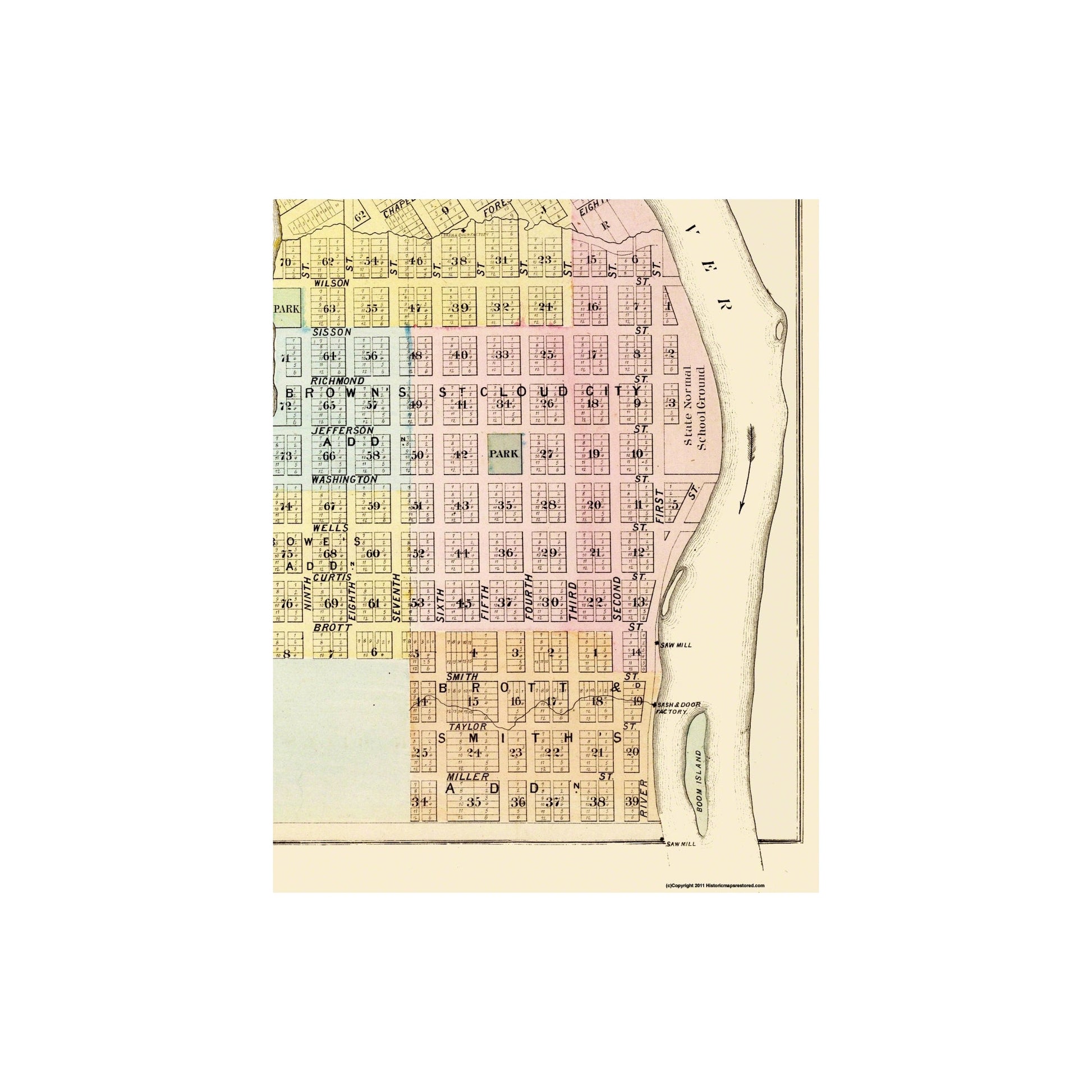 Old City Map - Saint Cloud Minnesota Landowner - 1874 - This is an exquisite full-color Reproduction printed on high-quality gloss paper, art paper or canvas.