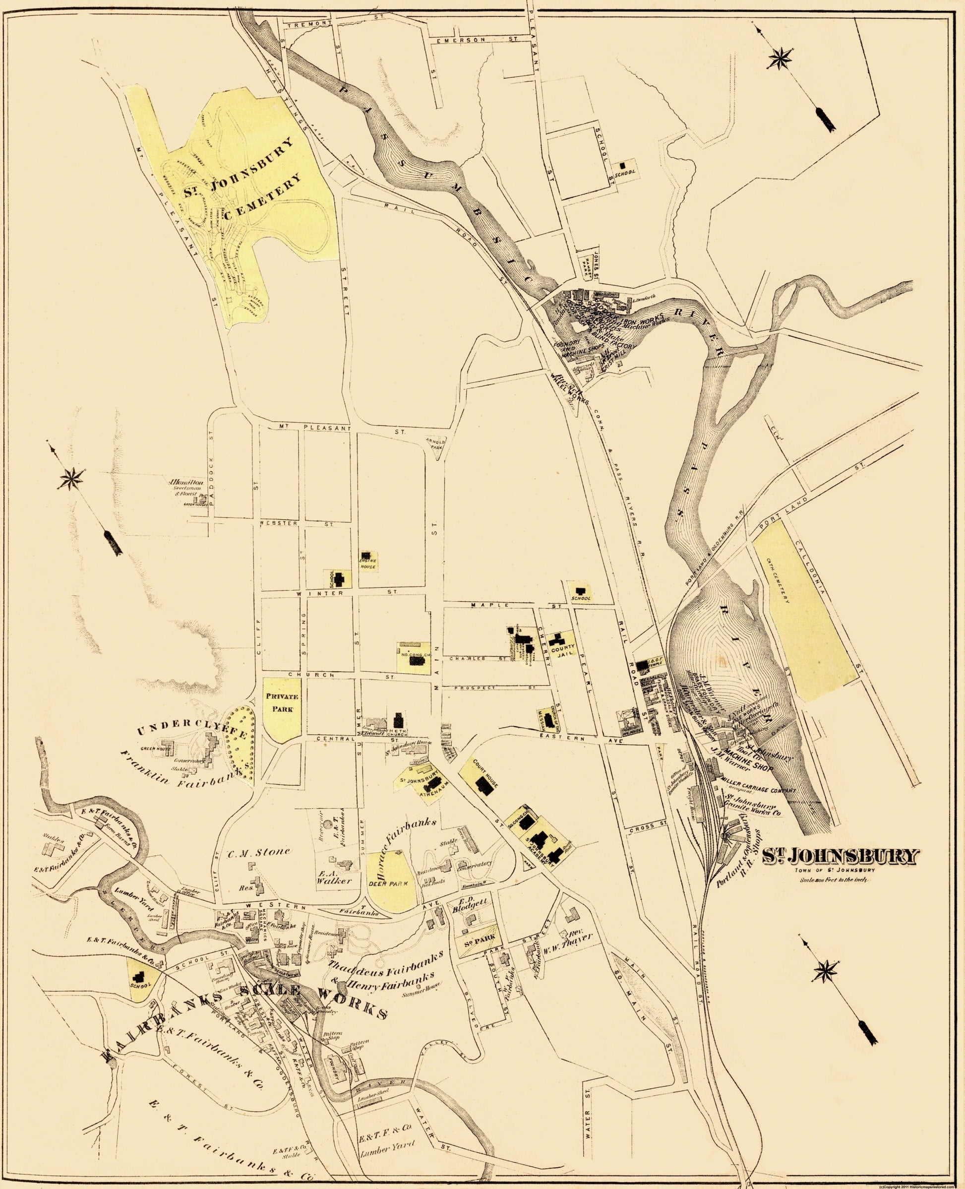 Old City Map - St. Johnsbury Vermont Landowner - 1876 - This is an exquisite full-color Reproduction printed on high-quality gloss paper, art paper or canvas.
