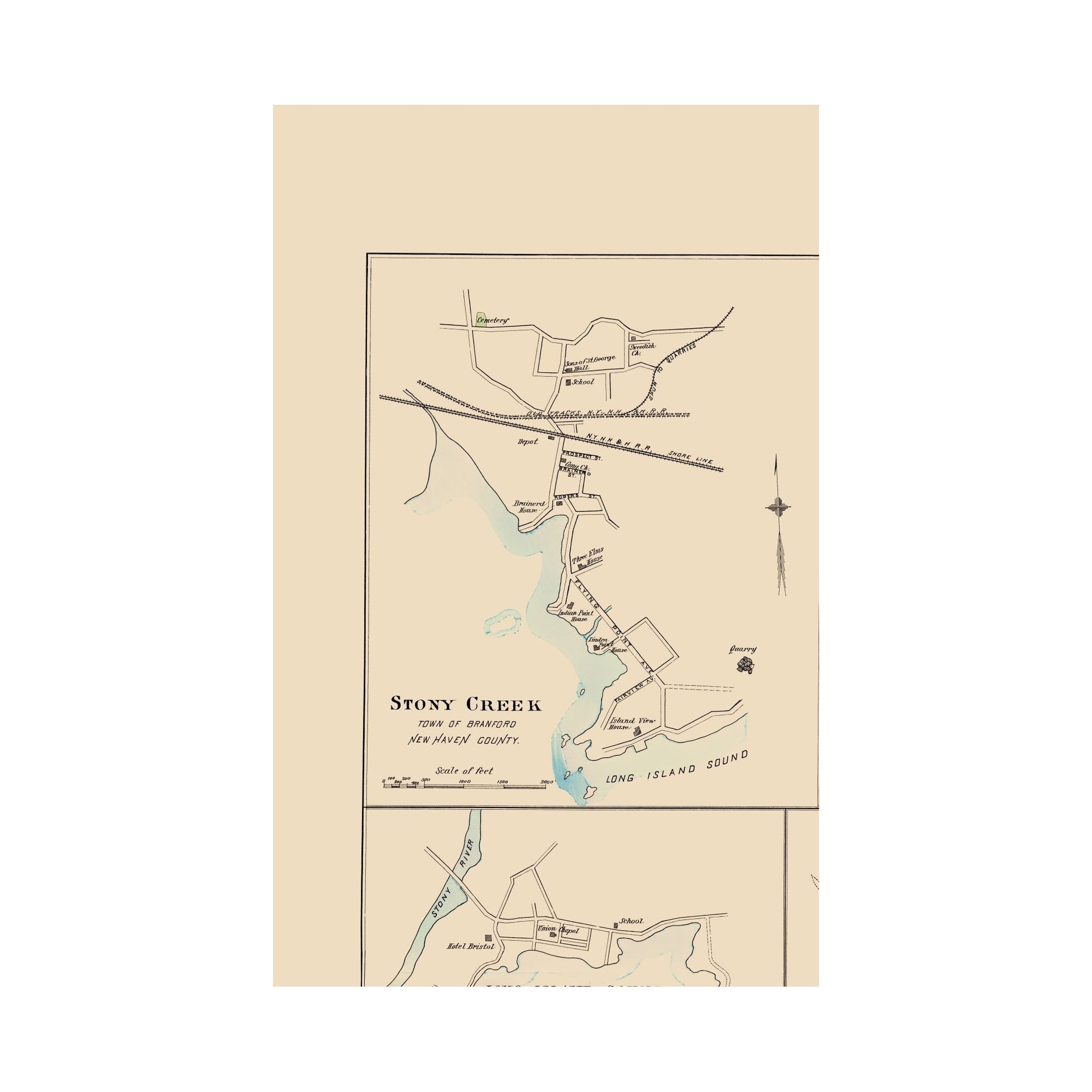 Historic City Map - Stony Creek New Haven Yalesville Connecticut - Hurd 1893 - 23 x 37.16 - Vintage Wall Art