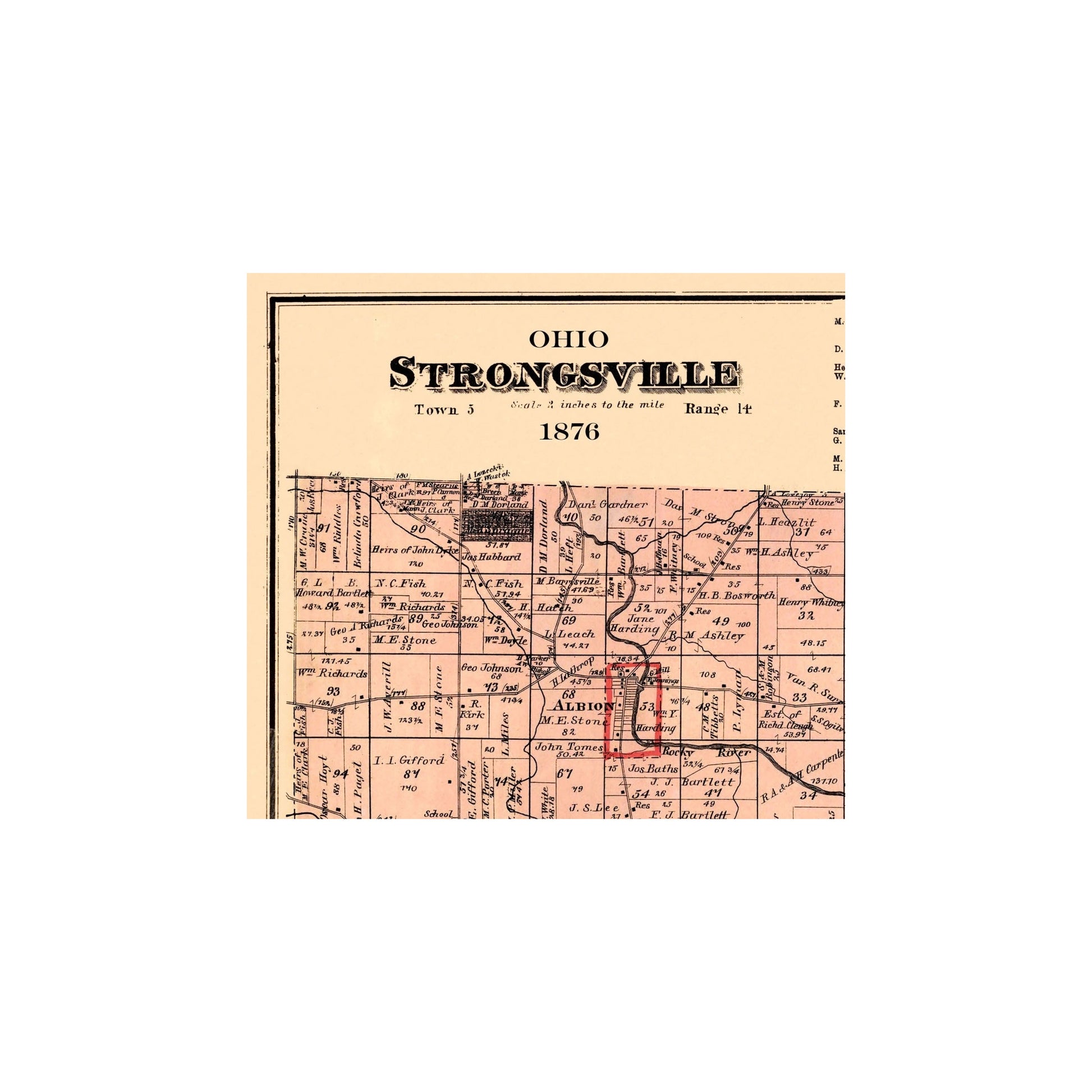 Old City Map - Strongsville Ohio Landowner - 1876 - This is an exquisite full-color Reproduction printed on high-quality gloss paper, art paper or canvas.