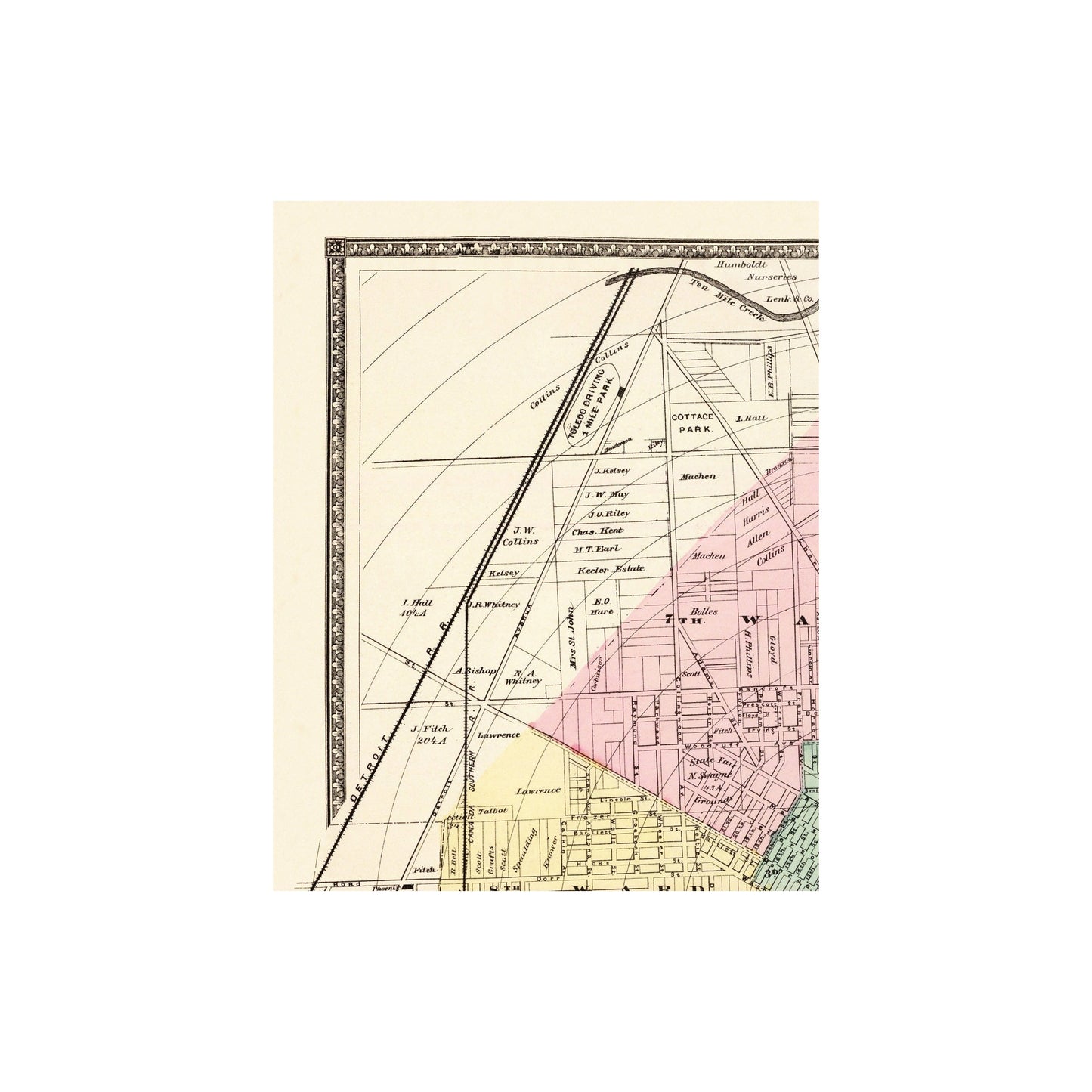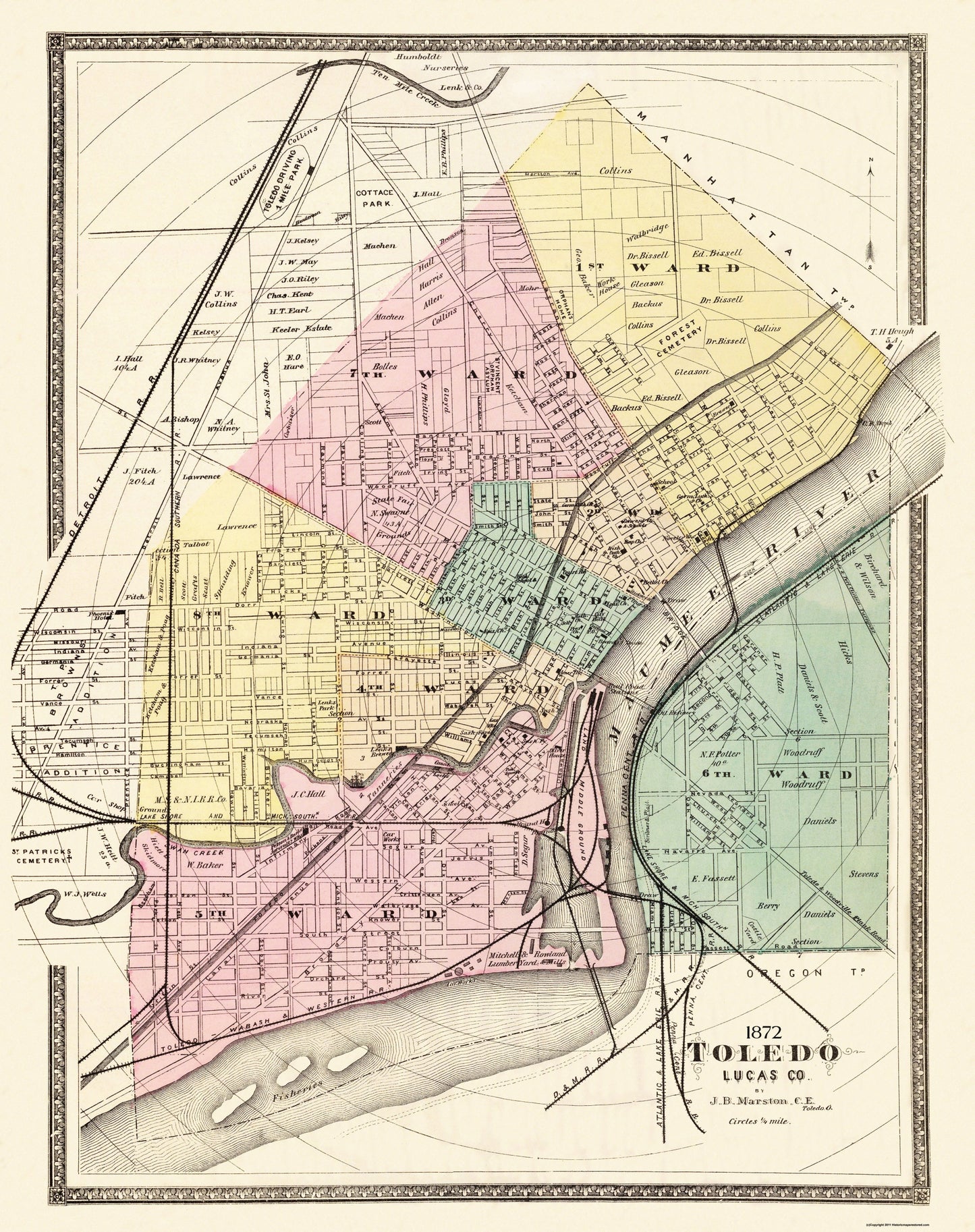 Old City Map - Toledo Ohio Landowner - 1872 - This is an exquisite full-color Reproduction printed on high-quality gloss paper, art paper or canvas.