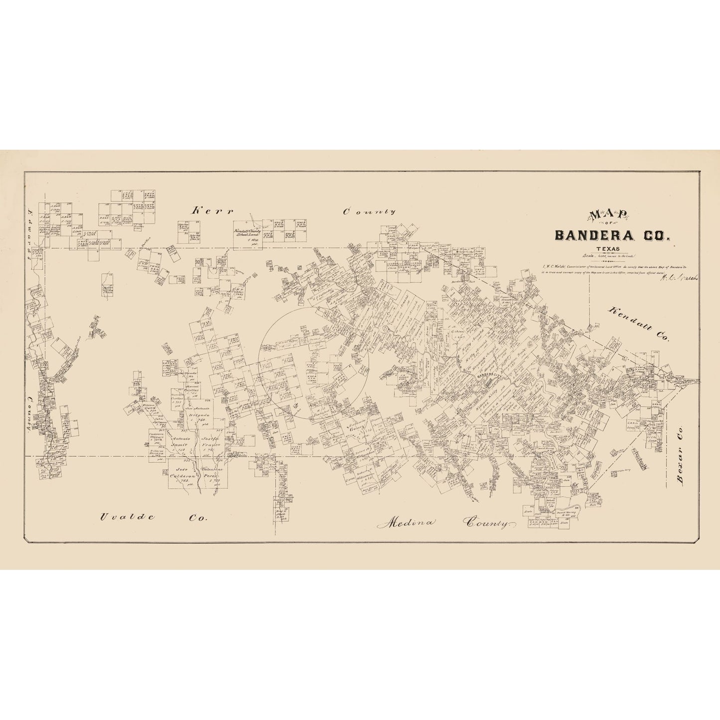 Historic County Map - Bandera County Texas - Walsh 1879 - 39.43 x 23 - Vintage Wall Art