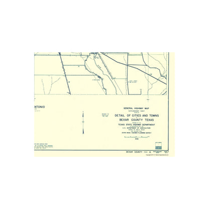 Old County Map - Bexar Texas Highway - Highway Dept 1936 - This is an exquisite full-color Reproduction printed on high-quality gloss paper, art paper or canvas.