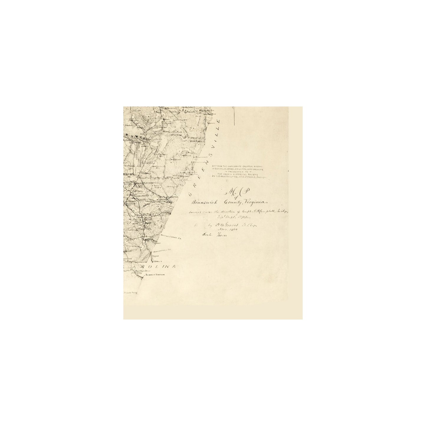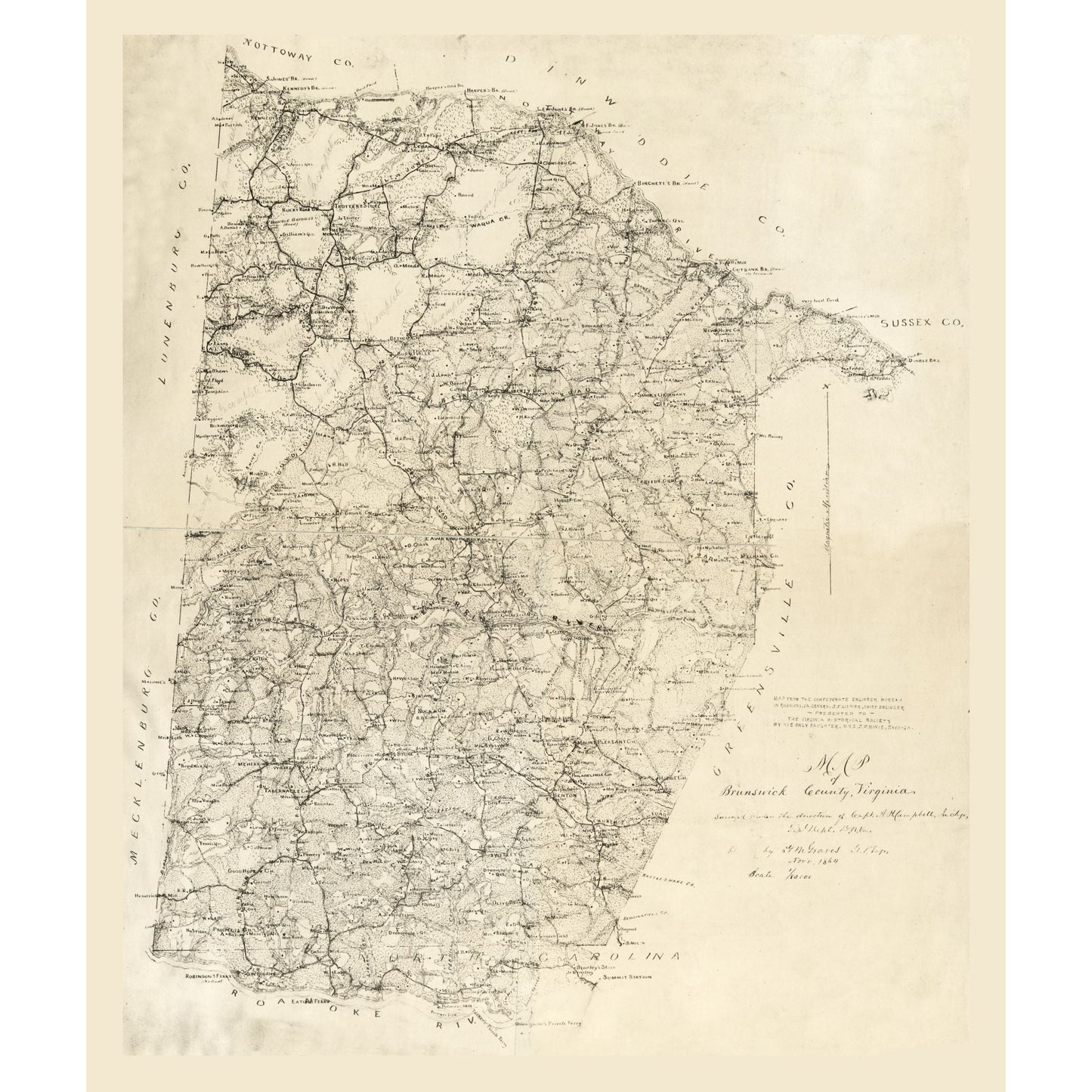 Old County Maps - Brunswick County Virginia - Graves 1864 - This is an exquisite full-color Reproduction printed on high-quality gloss paper, art paper or canvas.