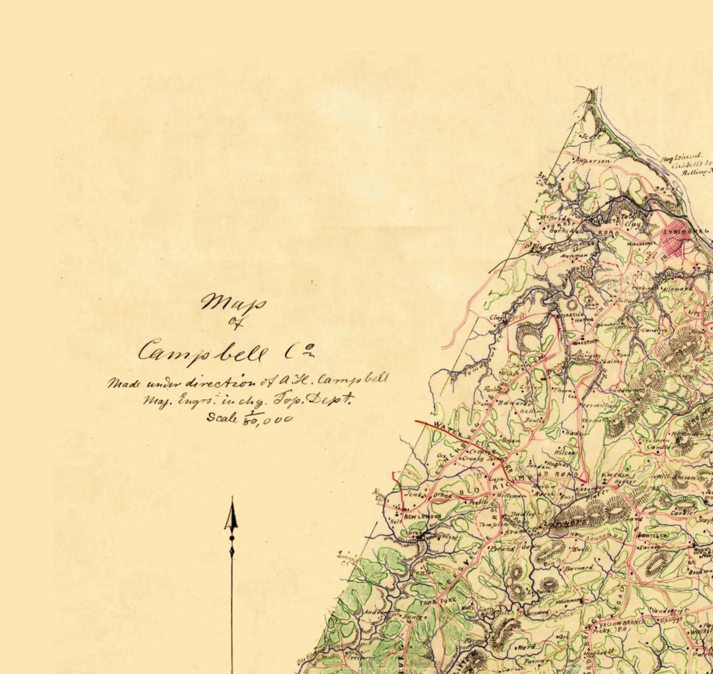 Historic County Map - Campbell County Virginia - Campbell 1860 - 24.33 x 23 - Vintage Wall Art