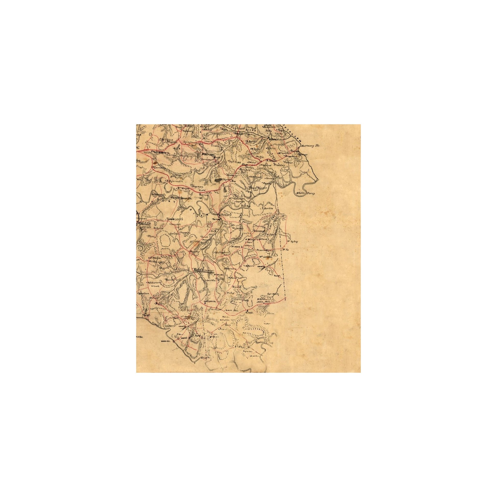 Old County Maps - Caroline County Virginia - Alt 1860 - This is an exquisite full-color Reproduction printed on high-quality gloss paper, art paper or canvas.