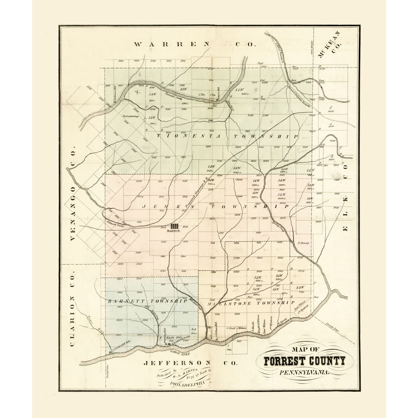 Old County Maps - Forest County Pennsylvania - Barnes 1858 - This is an exquisite full-color Reproduction printed on high-quality gloss paper, art paper or canvas.