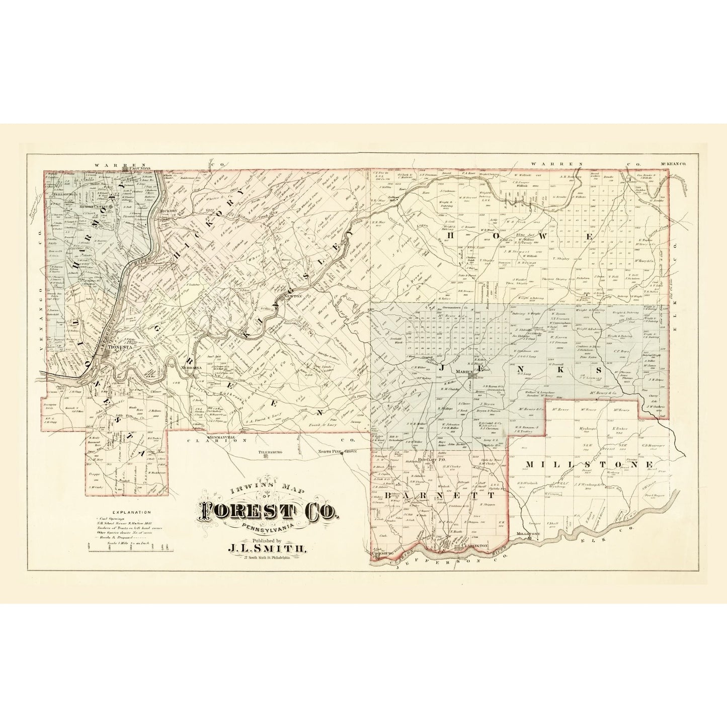 Old County Maps - Forest County Pennsylvania - Smith 1876 - This is an exquisite full-color Reproduction printed on high-quality gloss paper, art paper or canvas.