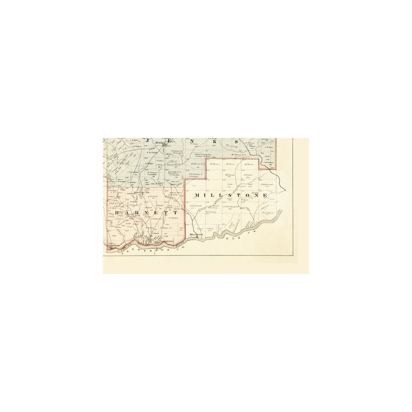 The following towns are featured: Newton, Tionesta, Marien, Nebraska, Millstone, Clarington.