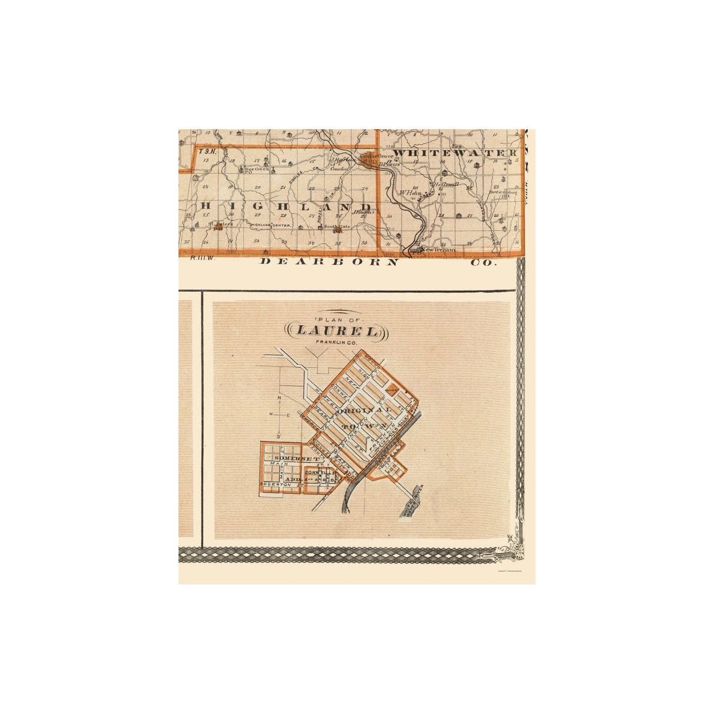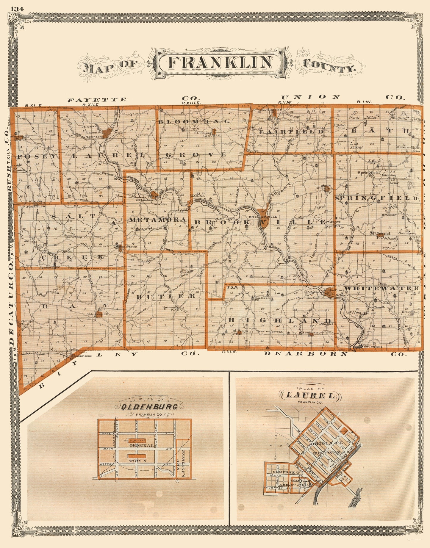 Sites and Townships Specific To This Map Are: Oldenburg, Laurel, Brookville, Springfield, Cedar Grove and Peppertown.