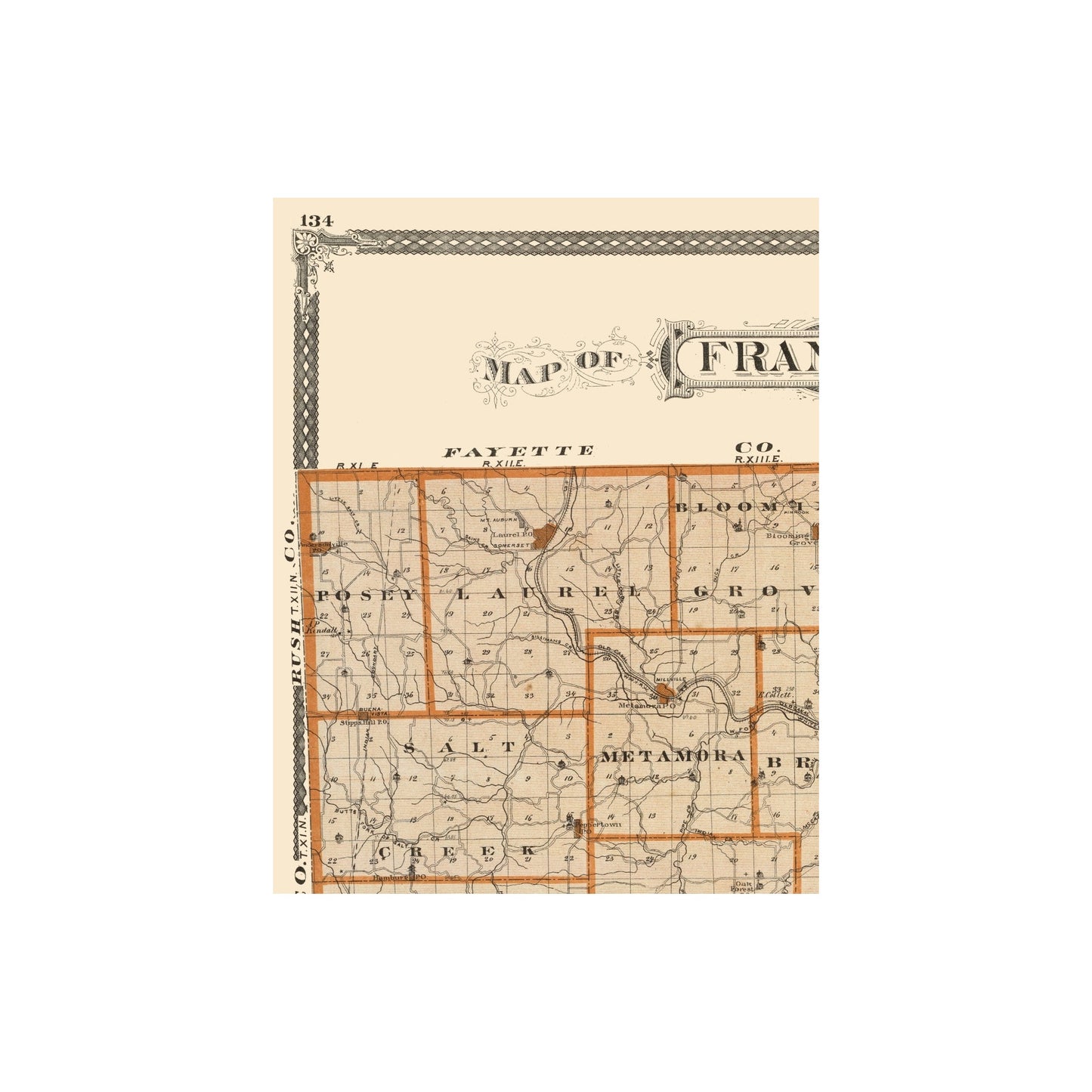 Historic County Map - Franklin County Indiana - Baskin 1876 - 23 x 29.32 - Vintage Wall Art