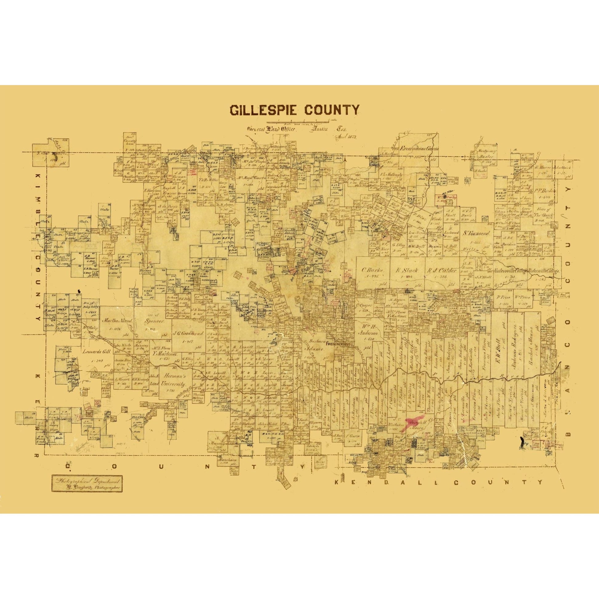 Historic County Map - Gillespie County Texas - General Land Office 1873 - 32.16 x 23 - Vintage Wall Art