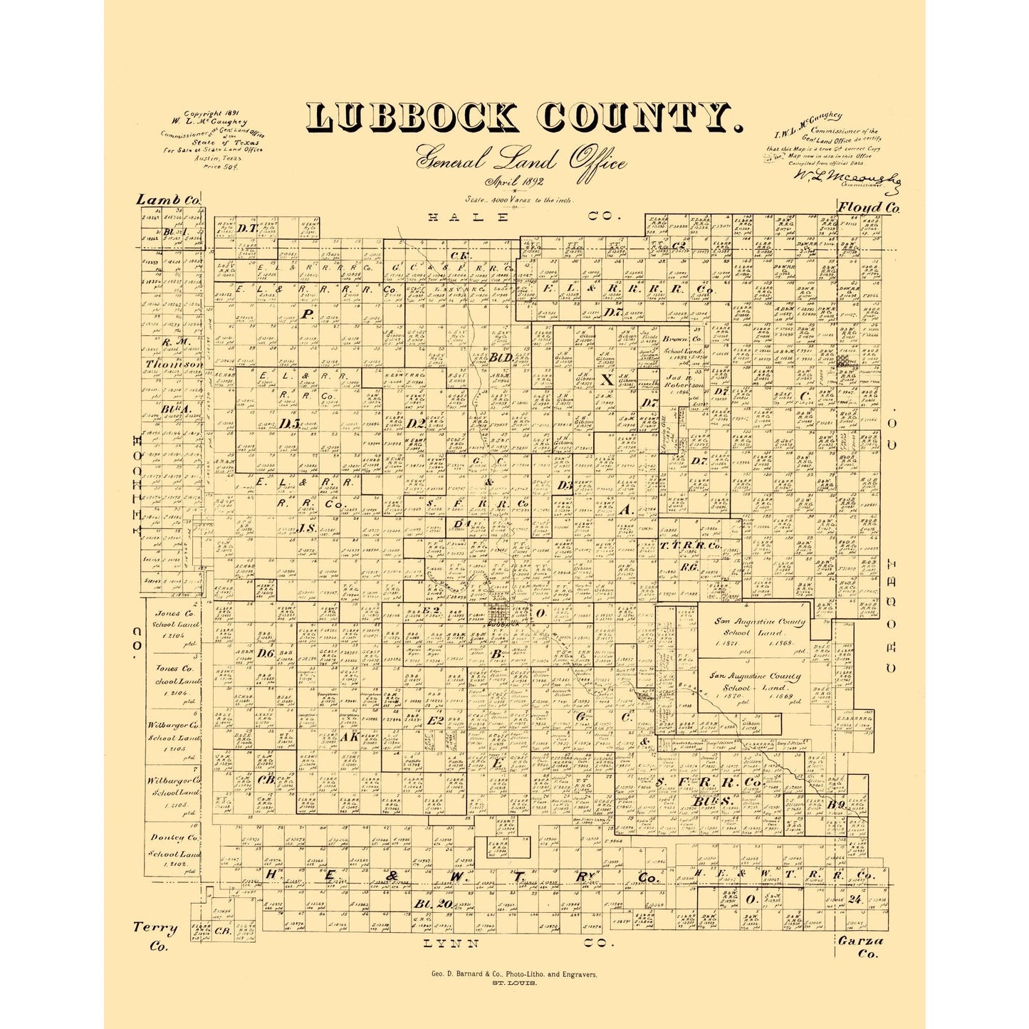Old County Maps - Lubbock County Texas - McGauhey 1892 - This is an exquisite full-color Reproduction printed on high-quality gloss paper, art paper or canvas.