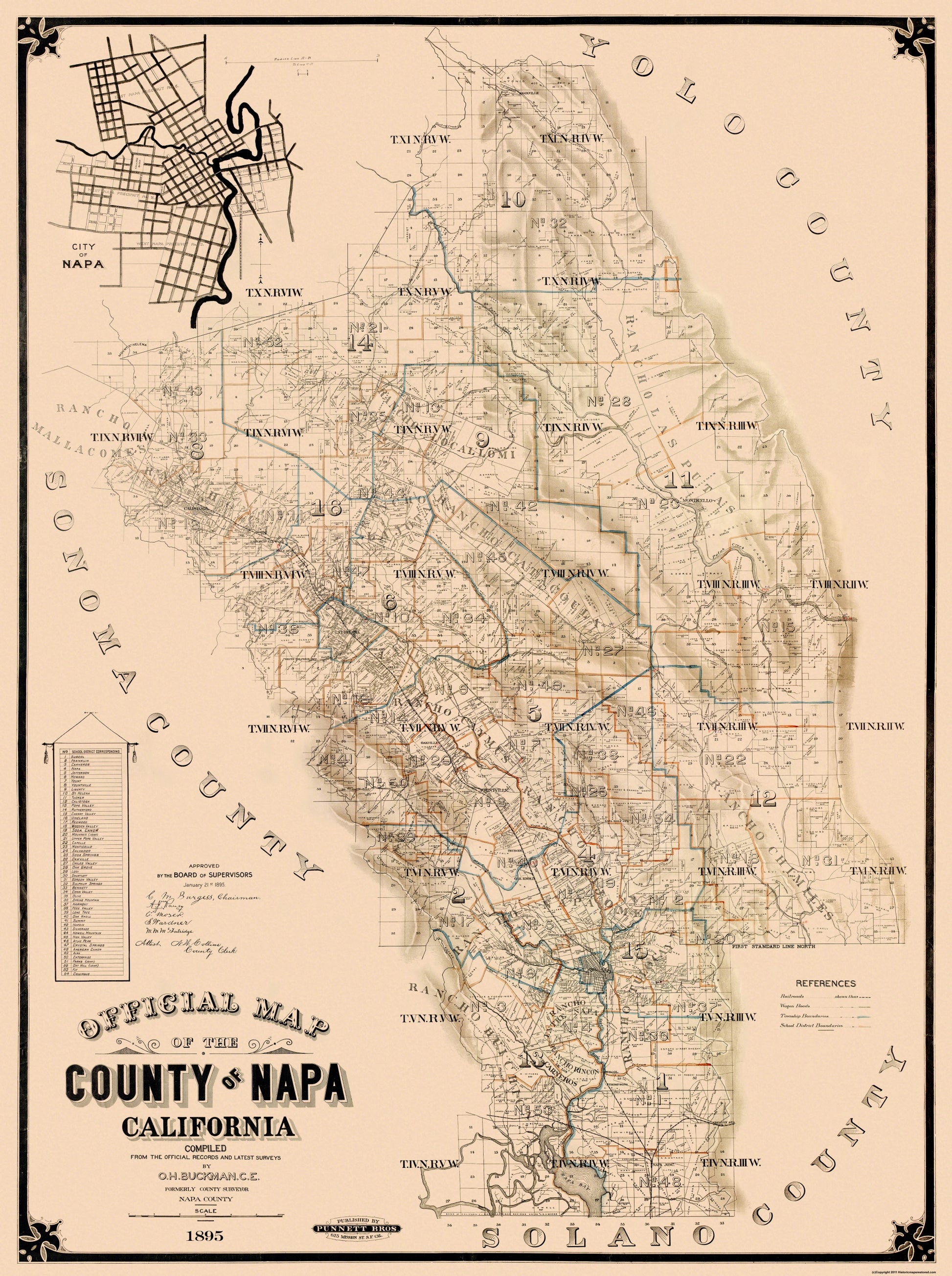Historic County Map - Napa County California - Buckman 1895 - 23 x 30.81 - Vintage Wall Art