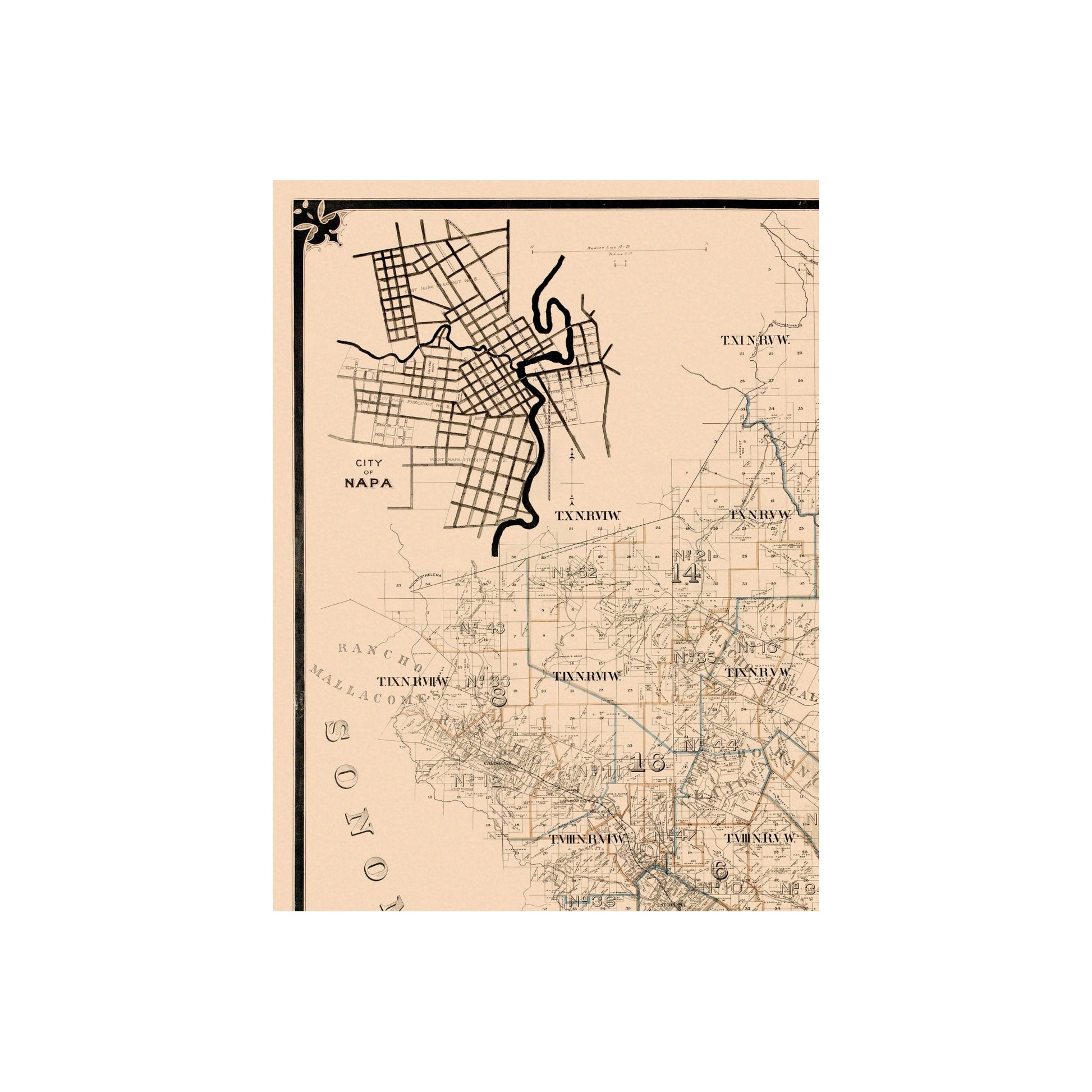 Old County Map - Napa California Landowner - 1895 - This is an exquisite full-color Reproduction printed on high-quality gloss paper, art paper or canvas.
