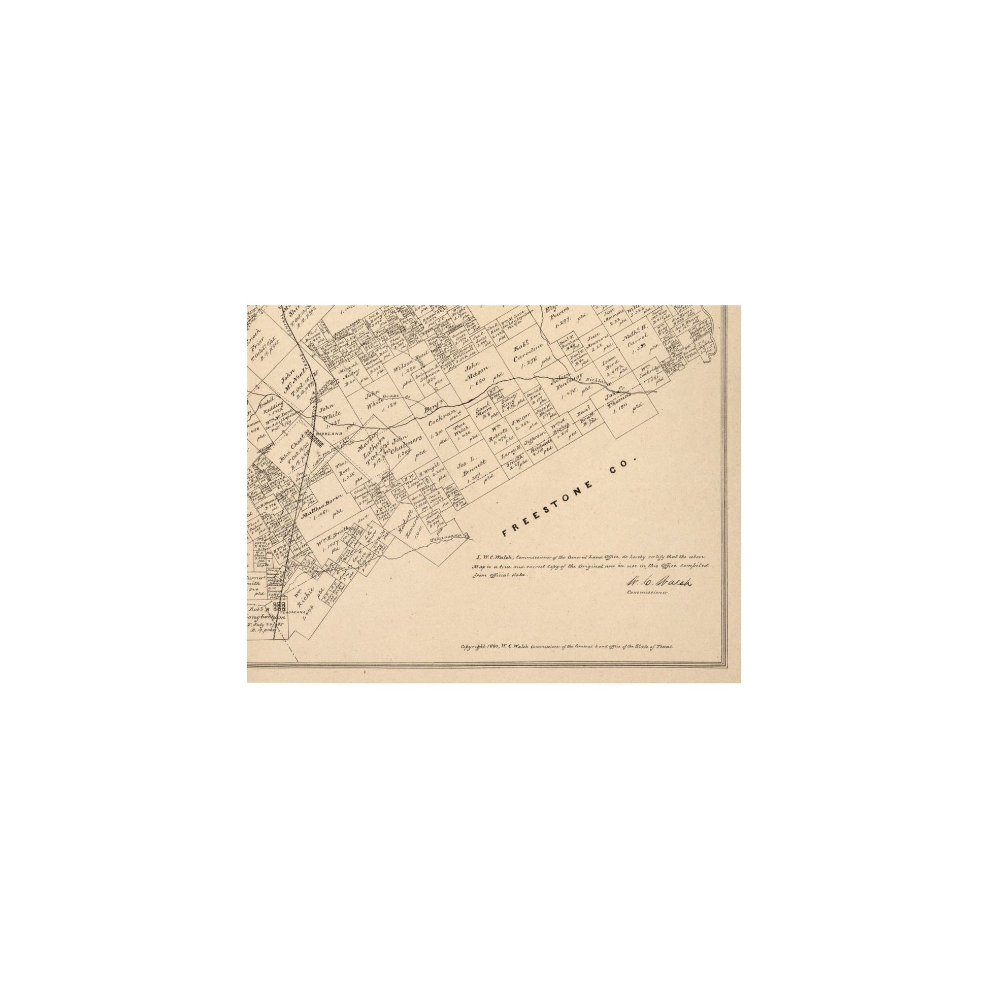 Old County Maps - Navarro County Texas - Walsh 1880 - This is an exquisite full-color Reproduction printed on high-quality gloss paper, art paper or canvas.