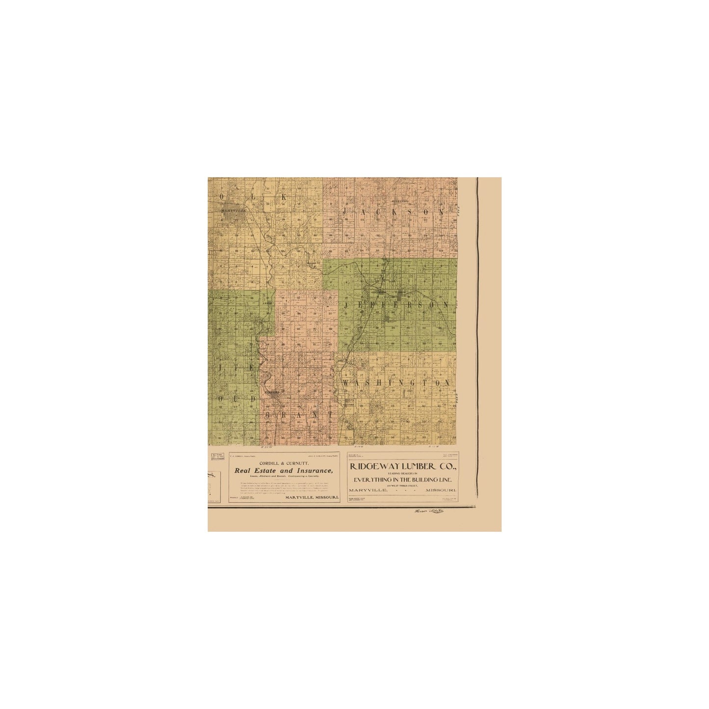 Old County Maps - Nodaway County Missouri - Hixson 1903 - 23 x 27.73 - This is an exquisite full-color Reproduction printed on high-quality gloss paper, art paper or canvas.