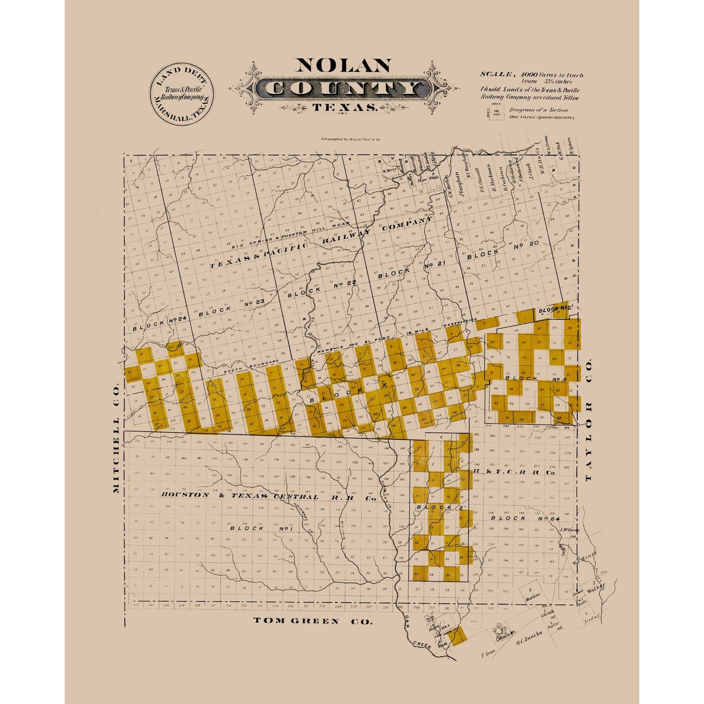 Historic County Map - Nolan County Texas - Gast 1870 - 23 x 28.19 - Vintage Wall Art