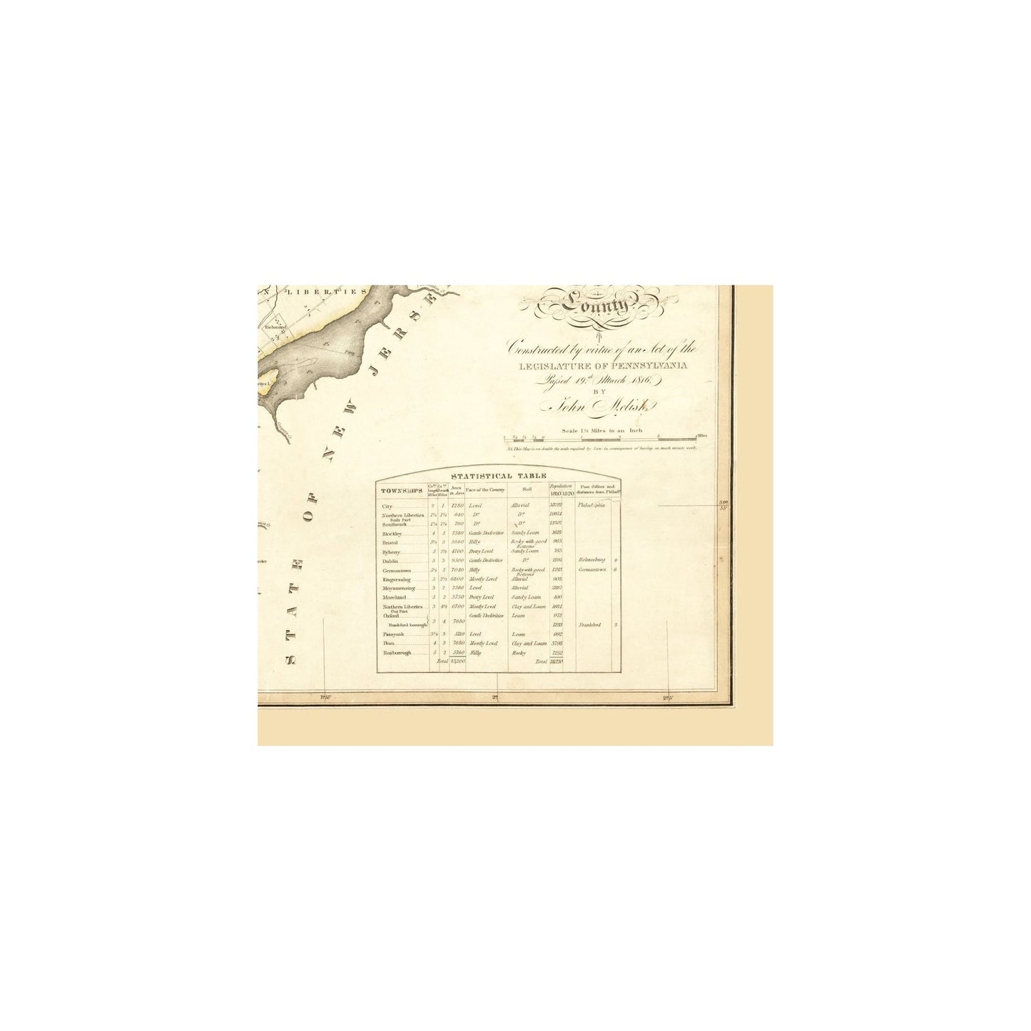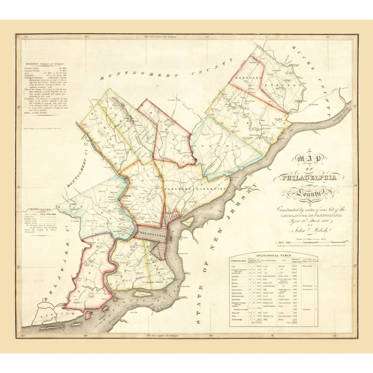 Old County Maps - Philadelphia County Pennsylvania - Melisk 1819 - This is an exquisite full-color Reproduction printed on high-quality gloss paper, art paper or canvas.