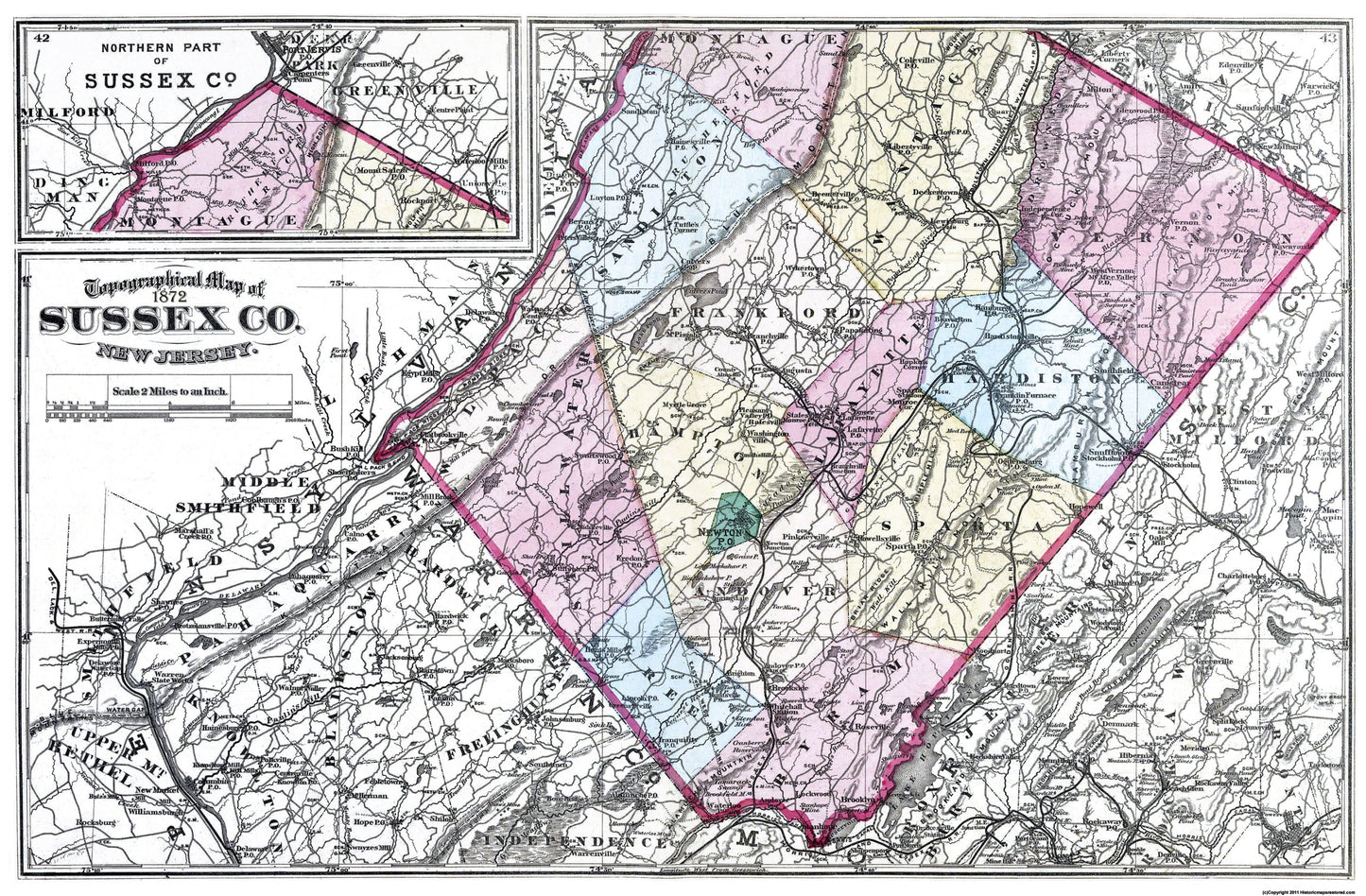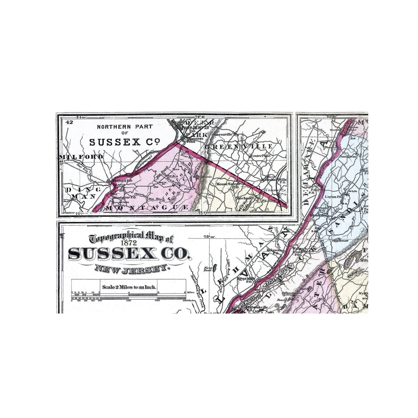 Old County Map - Sussex New Jersey - 1872 - This is an exquisite full-color Reproduction printed on high-quality gloss paper, art paper or canvas.