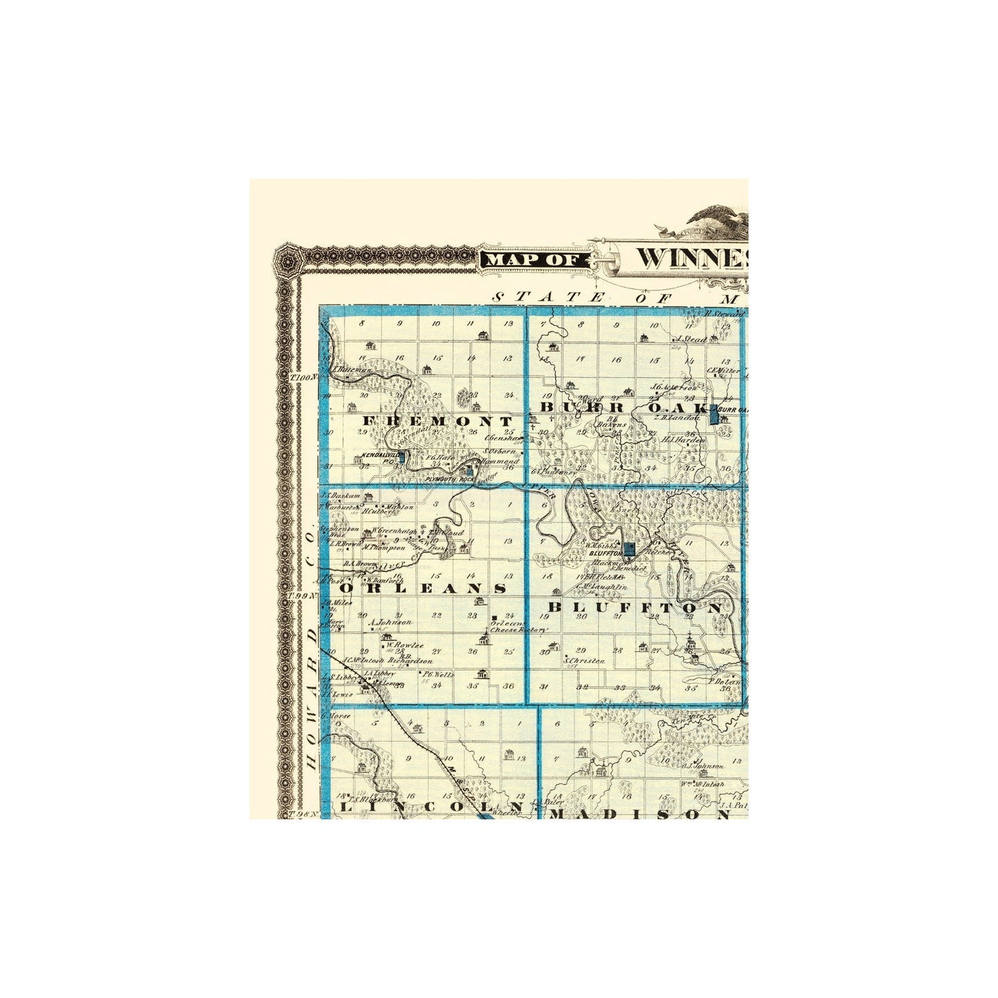Old County Map - Winneshiek Iowa Landowner - Andreas 1874 - This is an exquisite full-color Reproduction printed on high-quality gloss paper, art paper or canvas.