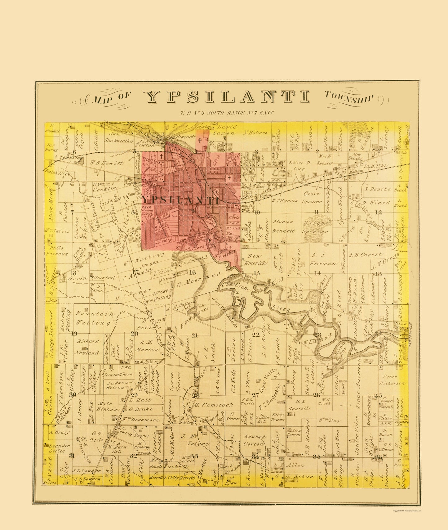 Old County Map - Ypsilanti Michigan Landowner - Everts 1874 - This is an exquisite full-color Reproduction printed on high-quality gloss paper, art paper or canvas.