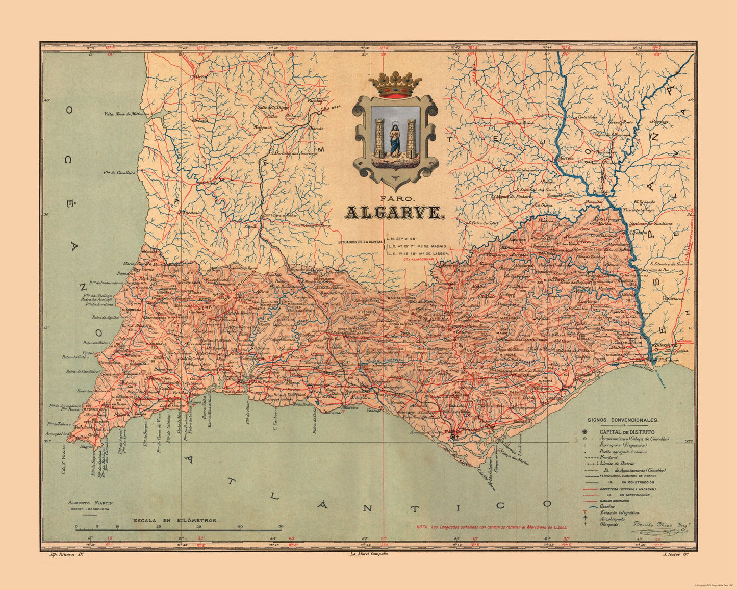 Old International Maps - Portugal - Algarve - Martine 1904 - This is an exquisite full-color Reproduction printed on high-quality gloss paper, art paper or canvas.