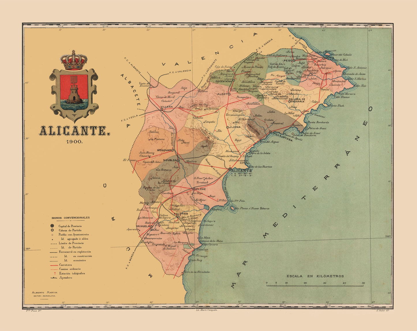 Old International Maps - Alicante 1900 - Martine 1904 - This is an exquisite full-color Reproduction printed on high-quality gloss paper, art paper or canvas.