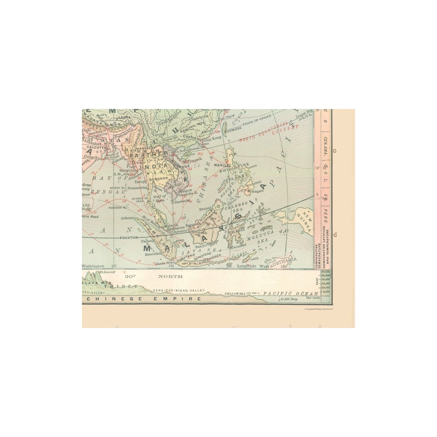 Old International Maps - Asia - Elevation Map - Monteith 1882 - This is an exquisite full-color Reproduction printed on high-quality gloss paper, art paper or canvas.