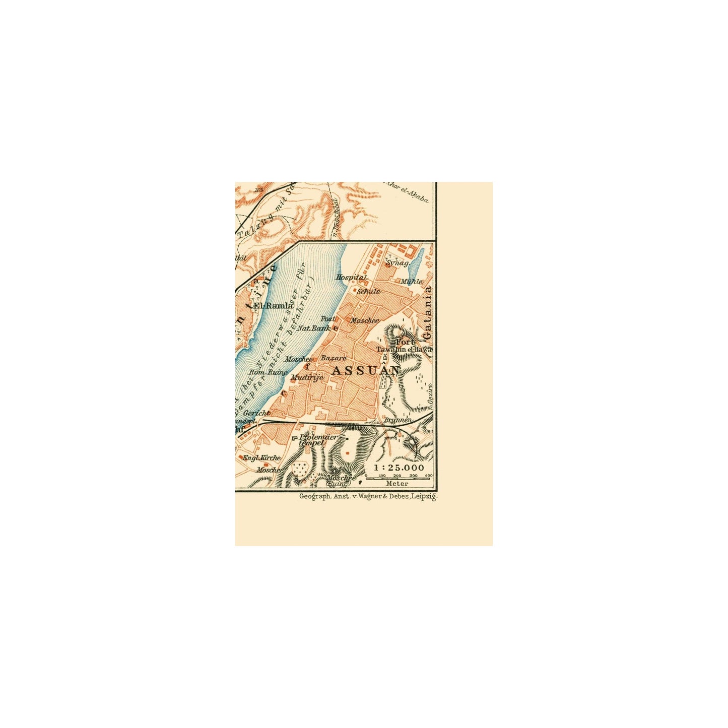 Historic Map - Aswan Egypt - Baedeker 1913 - 23 x 32.46 - Vintage Wall Art