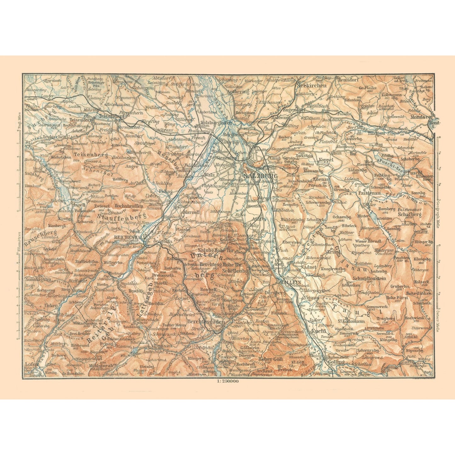 Old International Maps - Mountains - Austria - Germany - Baedeker 1896 - This is an exquisite full-color Reproduction printed on high-quality gloss paper, art paper or canvas.