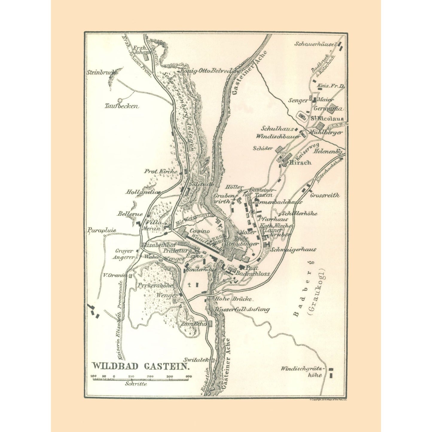 Old International Maps - Bad Gastein - Austria - Baedeker 1896 - This is an exquisite full-color Reproduction printed on high-quality gloss paper, art paper or canvas.