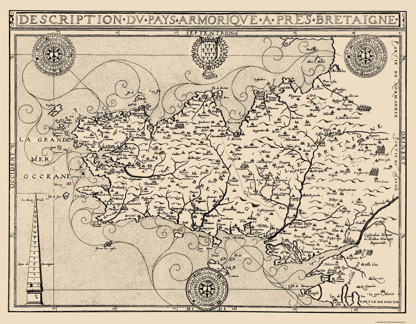Old France Map - Brittany Region - Tavernier 1641 - This is an exquisite full-color Reproduction printed on high-quality gloss paper, art paper or canvas.