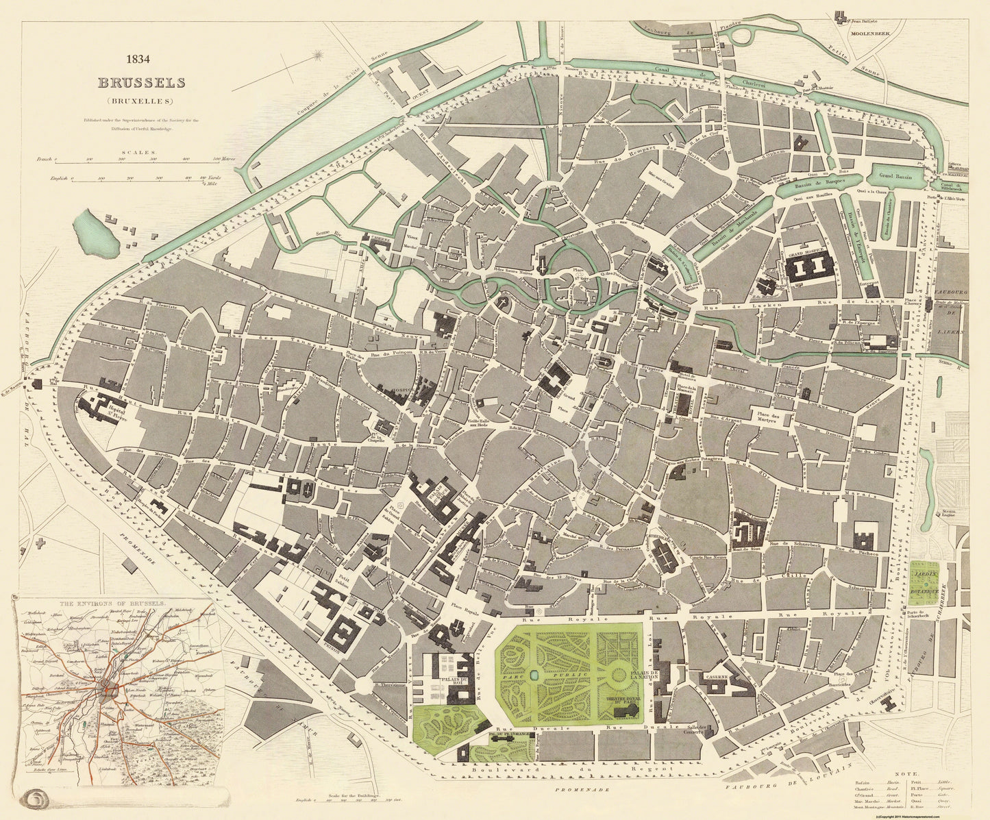 Historic Map - Brussels Belgium - Chapman 1834 - 27.75 x 23 - Vintage Wall Art