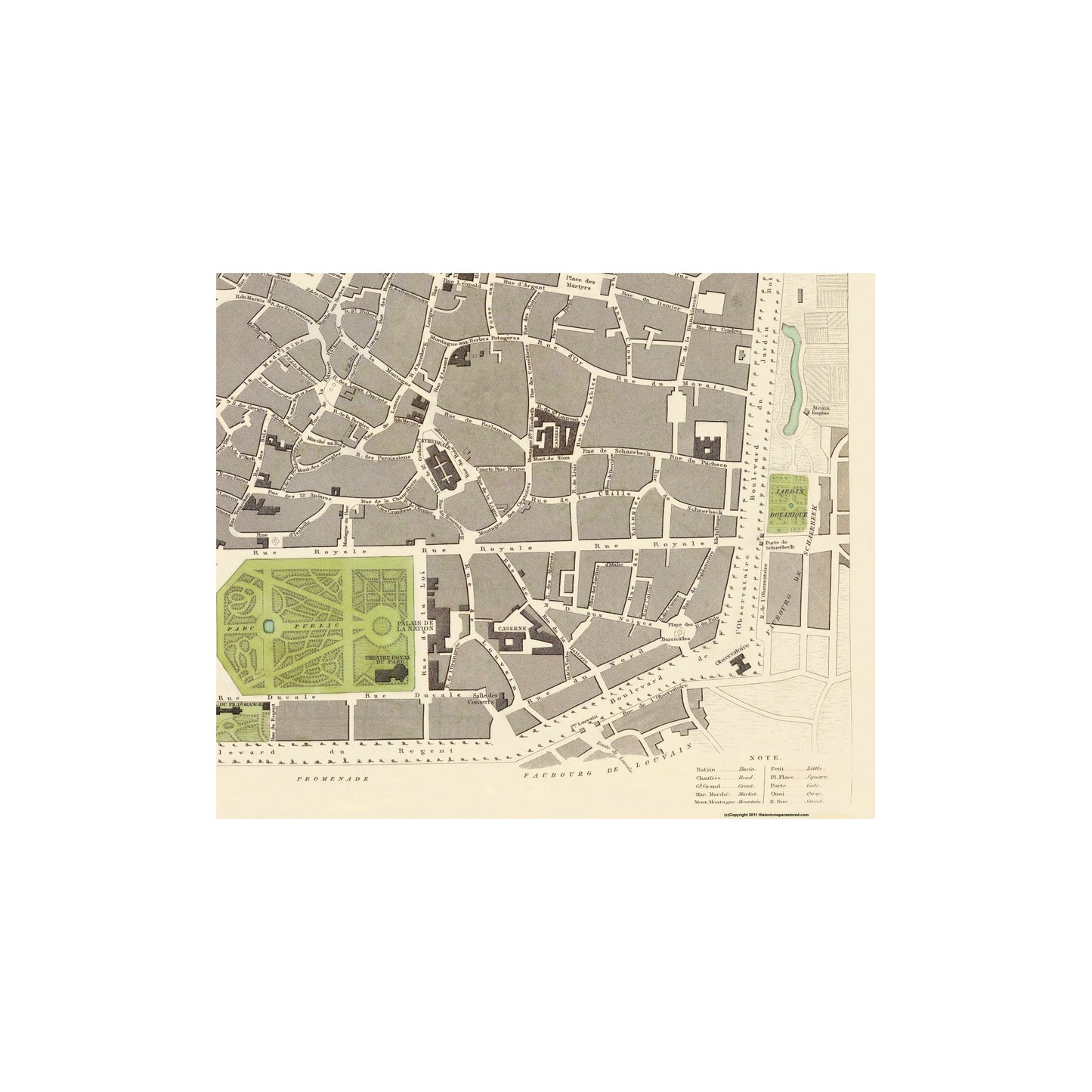 Sites and Townships Specific To This Map Are: Rue Des Minimes, Mont De Sion, Rue De Beriamont, Rue Royal, Jardin Botanique, Parc Public, Bassin De Marchands, Senne River, Palais Du Roi, Churches, Schools, and many other Prominent Buildings Located.