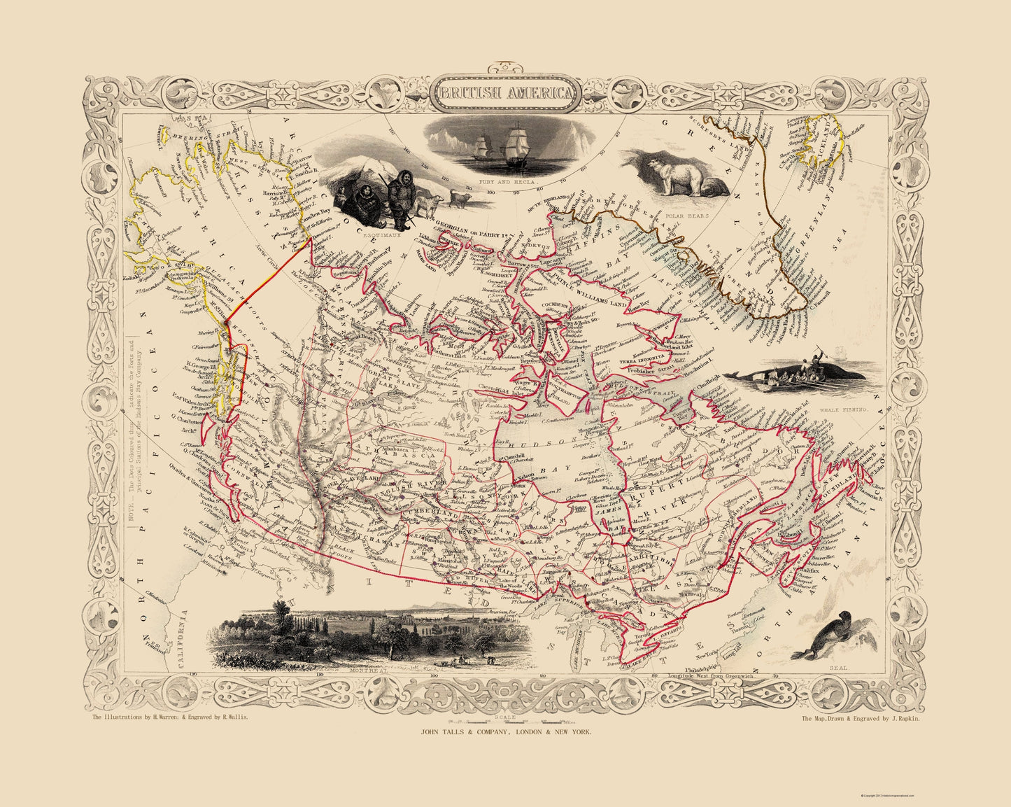 Historic Map - Canada British America - Tallis 1851 - 23 x 28.83 - Vintage Wall Art