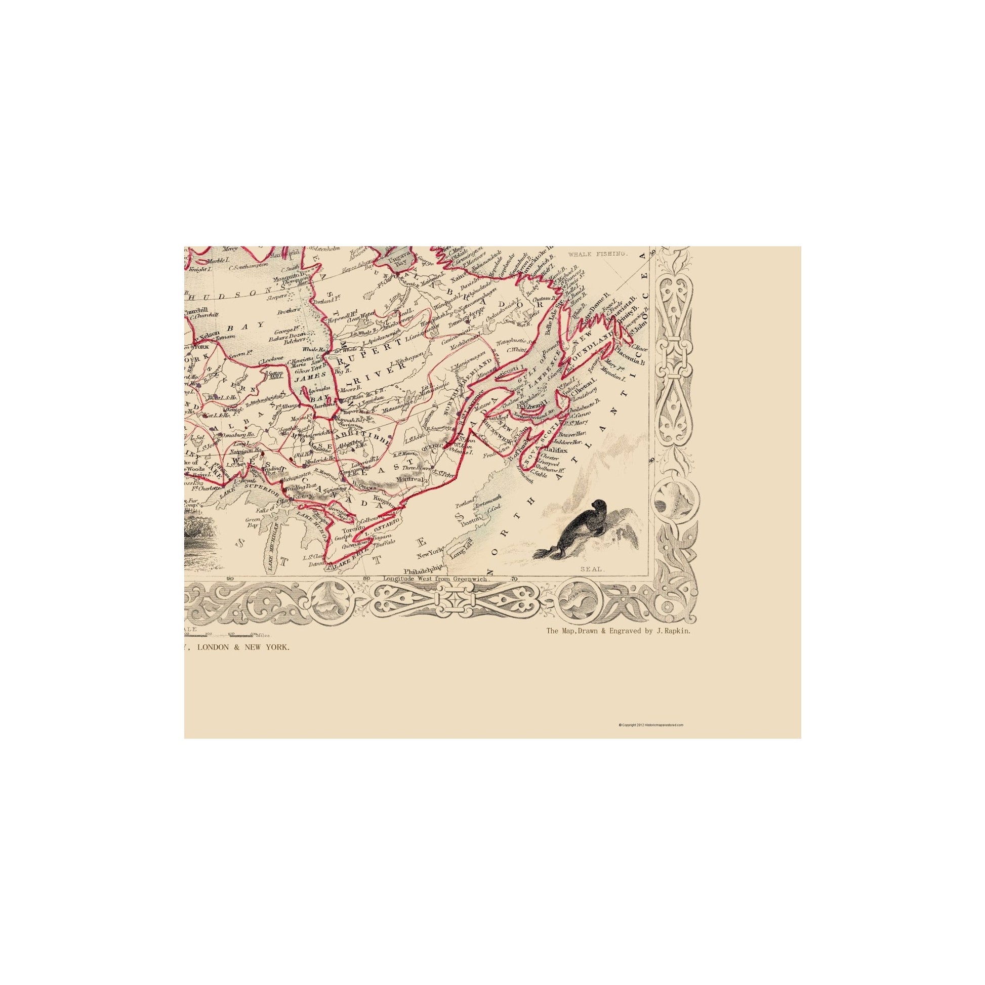 Old Canada Map - British America - Tallis 1851 - This is an exquisite full-color Reproduction printed on high-quality gloss paper, art paper or canvas.